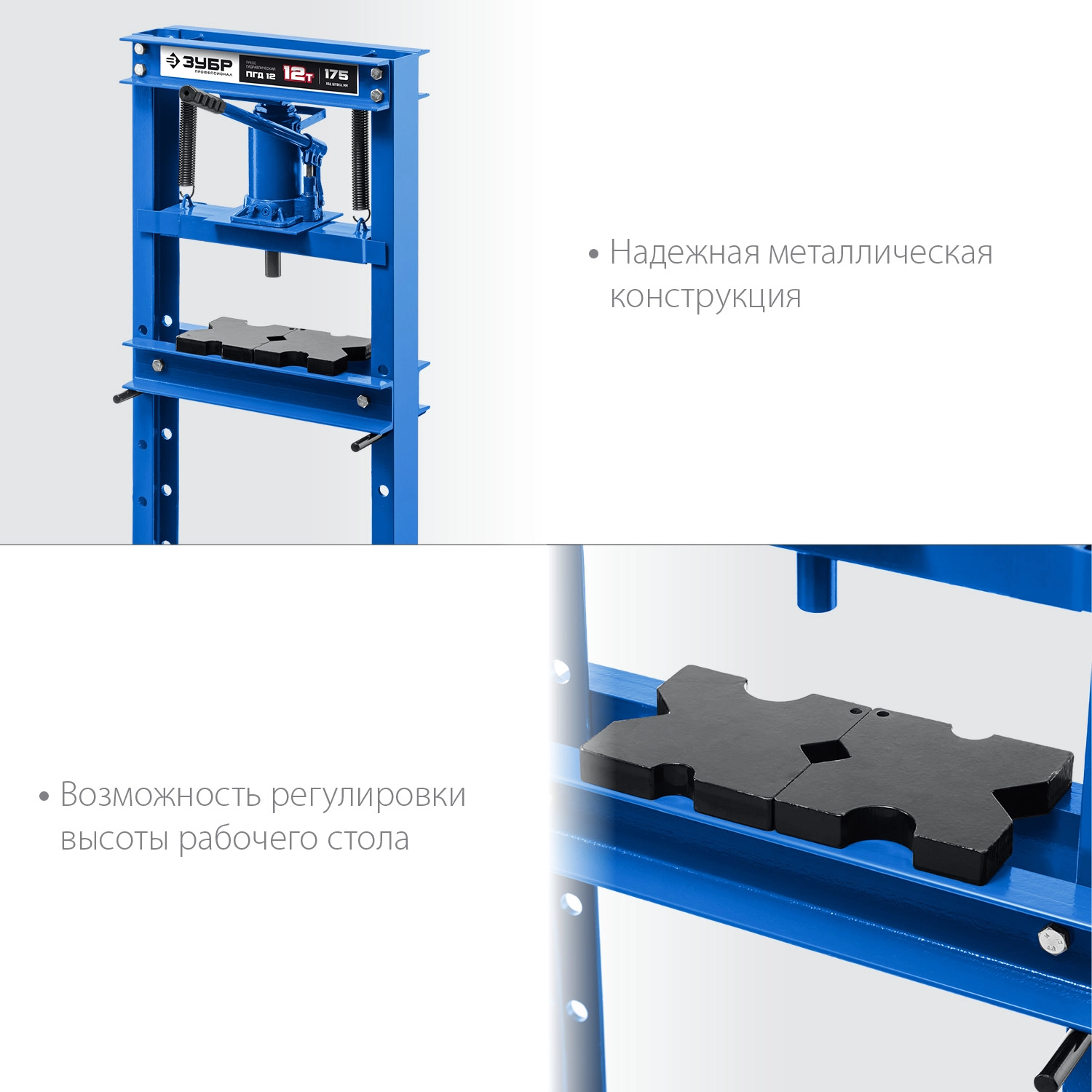ПроизводителиПресс гидравлический с домкратом и возвратными пружинами 12т "ПГД-12""Профессионал" (43070-12) ЗУБР