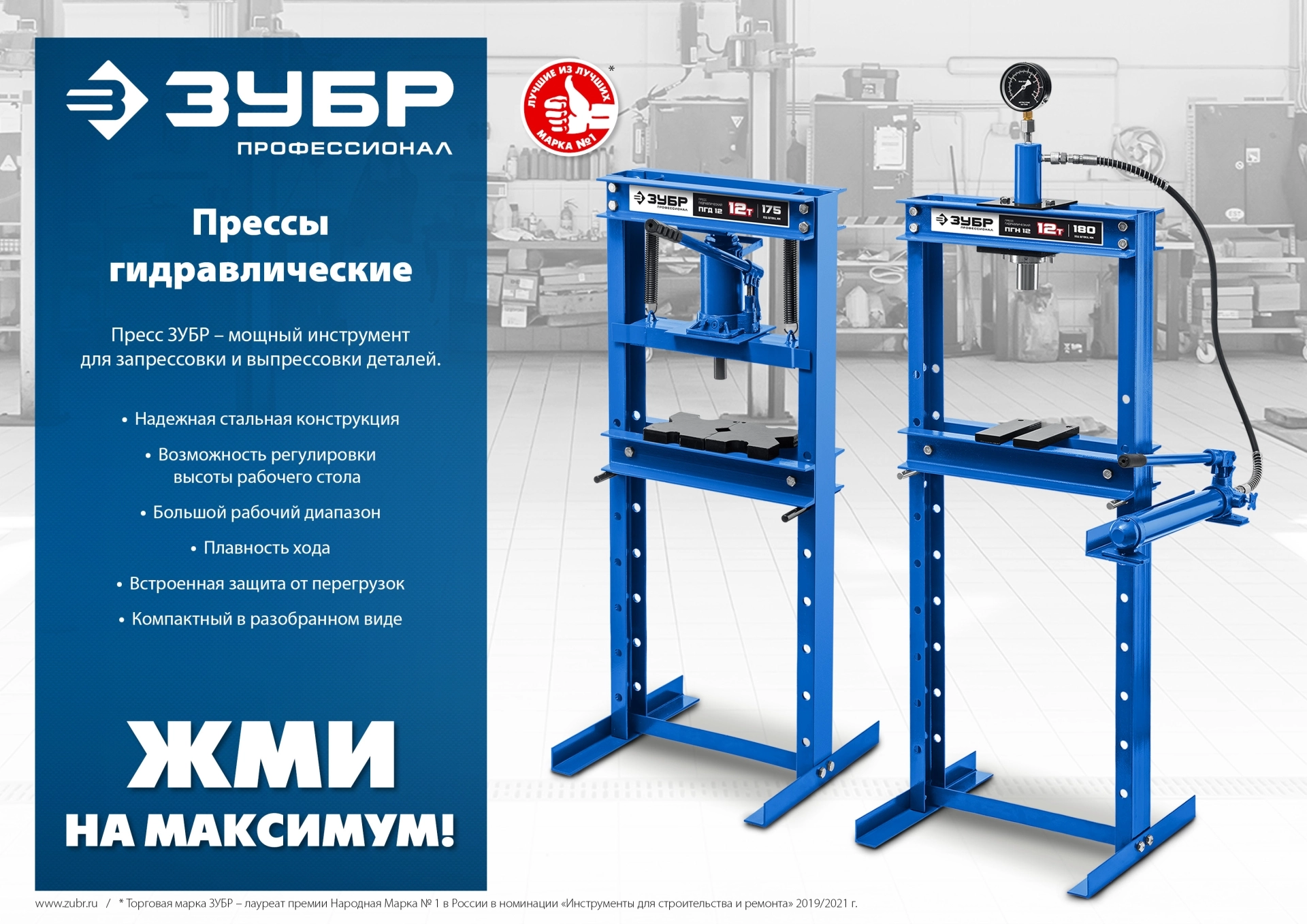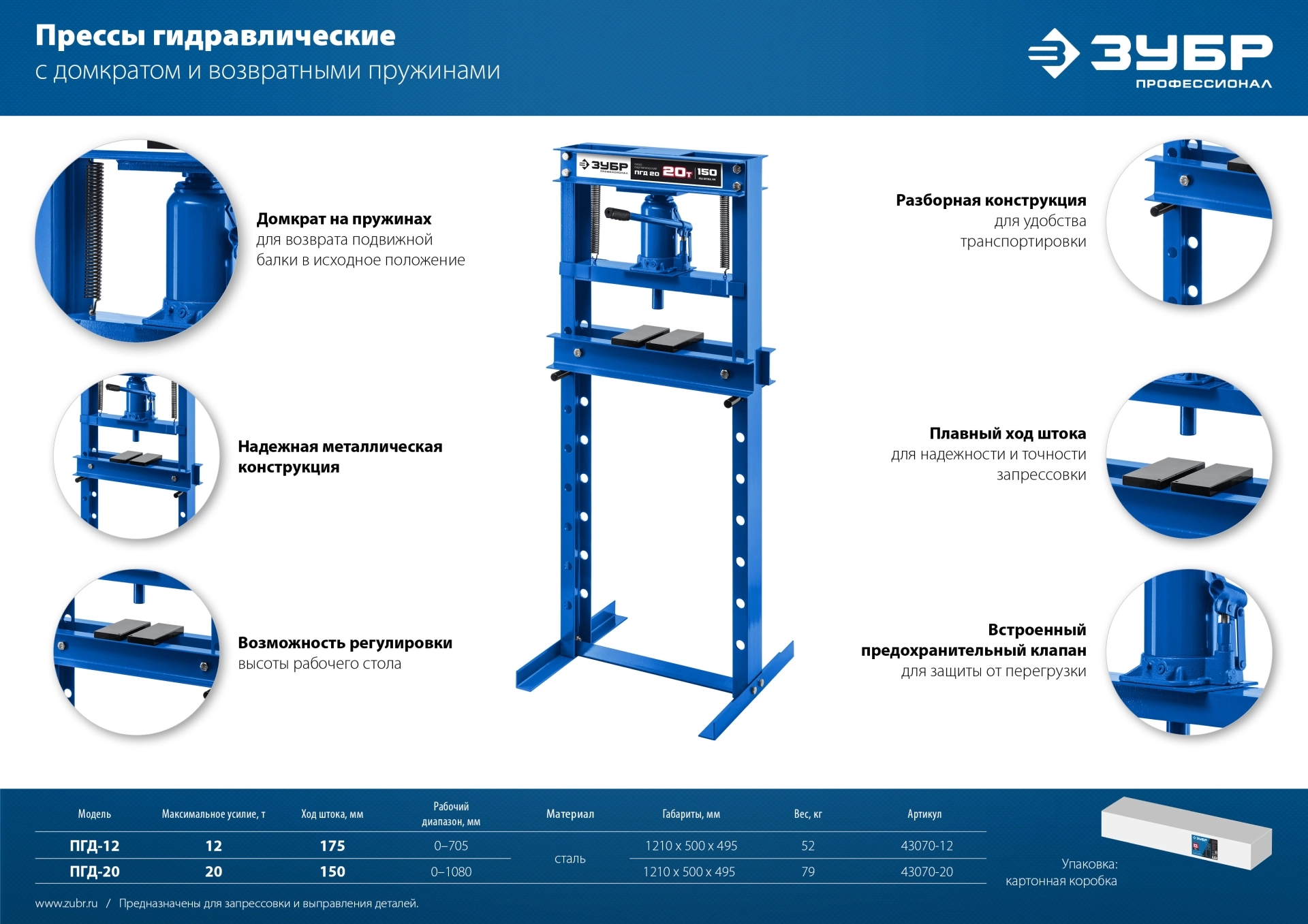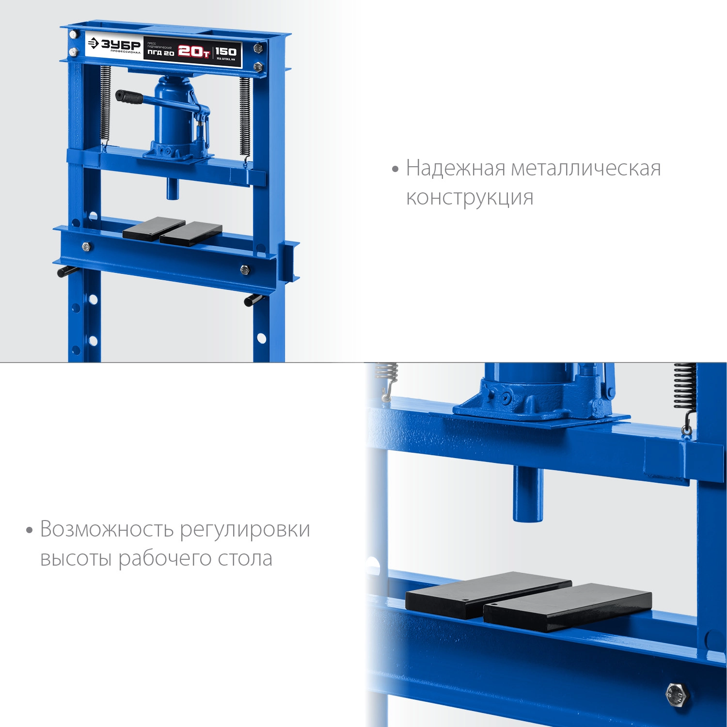 ПроизводителиПресс гидравлический с домкратом и возвратными пружинами 20т "ПГД-20""Профессионал" (43070-20) ЗУБР