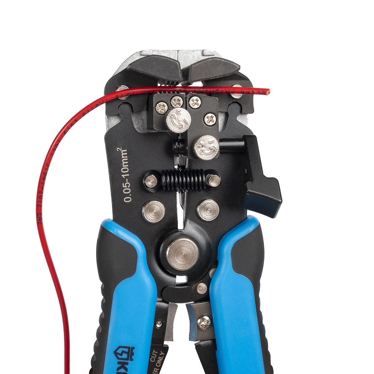 В микродиапазоне проводов от 0.05 мм2 и для сечения 10 мм2 используется винт микронастройки Снятие изоляции с моножильных и многопроволочных жил без повреждения проводника Усиленные прижимные губки с шириной захвата 13 мм Окно для сброса обрезков изоляции Одновременная зачистка нескольких проводов Модуль для резки «CutPro» со сменными лезвиями из нержавеющей стали и новой системой крепления Ширина лезвий для резки: 13 мм Две встроенные возвратные пружины Съемный цинковый регулятор длины снятия изоляции Эргономичные двухкомпонентные рукоятки с прорезиненными вставками из нескользящего материала Вес: 350 г Длина: 205 мм Характеристики