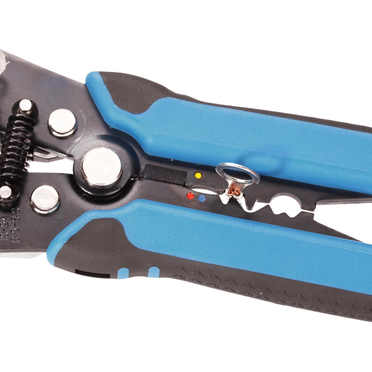 Металлическая отбортовка защитной крышки механизма Съемный регулятор длины снятия изоляции с винтом, фиксирующим его положение Нескользящие двухкомпонентные рукояткисо вставками из мягкой термопластрезины Вес: 340 г Длина: 205 мм Характеристики
