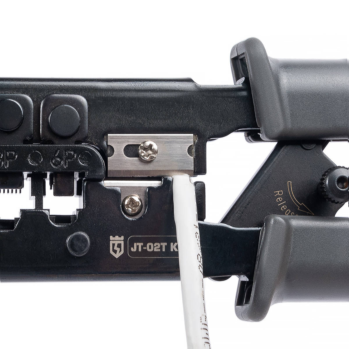 JT-02T: Пресс-клещи для RJ разъемов Код товара (артикул) 89229 Наименование текстовое расширенное Пресс-клещи для RJ разъемов Обозначение JT-02T Назначение, применение обжим разъемов RJ/снятие изоляции с плоских телефонных проводов/снятие оболочки с круглых проводов типа UTP, STP/резка проводов/тестирование кабельных линий