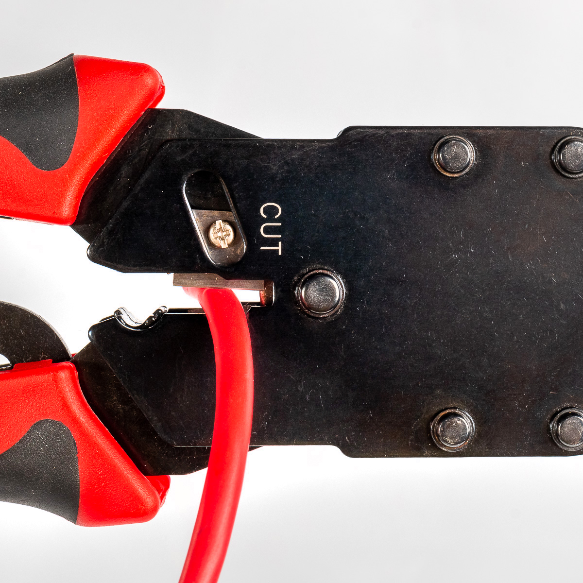 JT-03 Многофункциональные пресс-клещи с 3 встроенными модулями для обжима RJ-разъемов, КВТ 79759 — многофункциональные обжимные клещи 4 в 1 применяются для: обжима разъемов RJ снятия изоляции с плоских телефонных проводов снятия оболочки с круглых проводов типа UTP, STP резки проводов