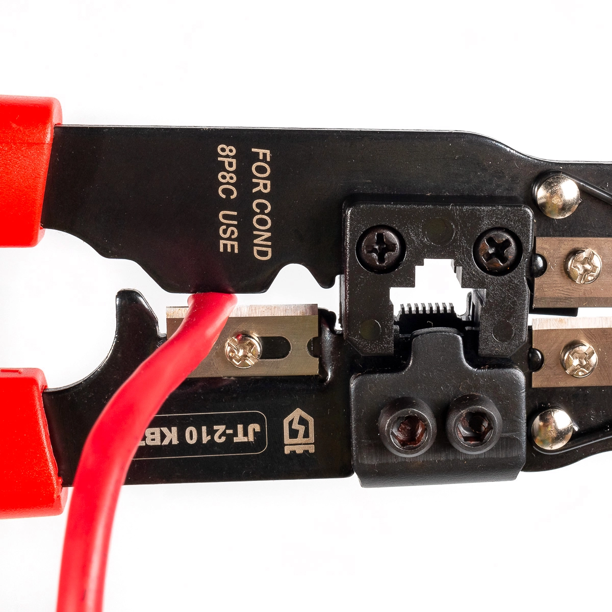 JT-210 Многофункциональные пресс-клещи со встроенным модулем для обжима RJ-45, КВТ 84824 — легкие и компактные пресс-клещи 4 в 1, применяются для: обжима разъемов RJ-45 снятия изоляции с плоских телефонных проводов снятия оболочки с круглых проводов типа UTP, STP резки проводов