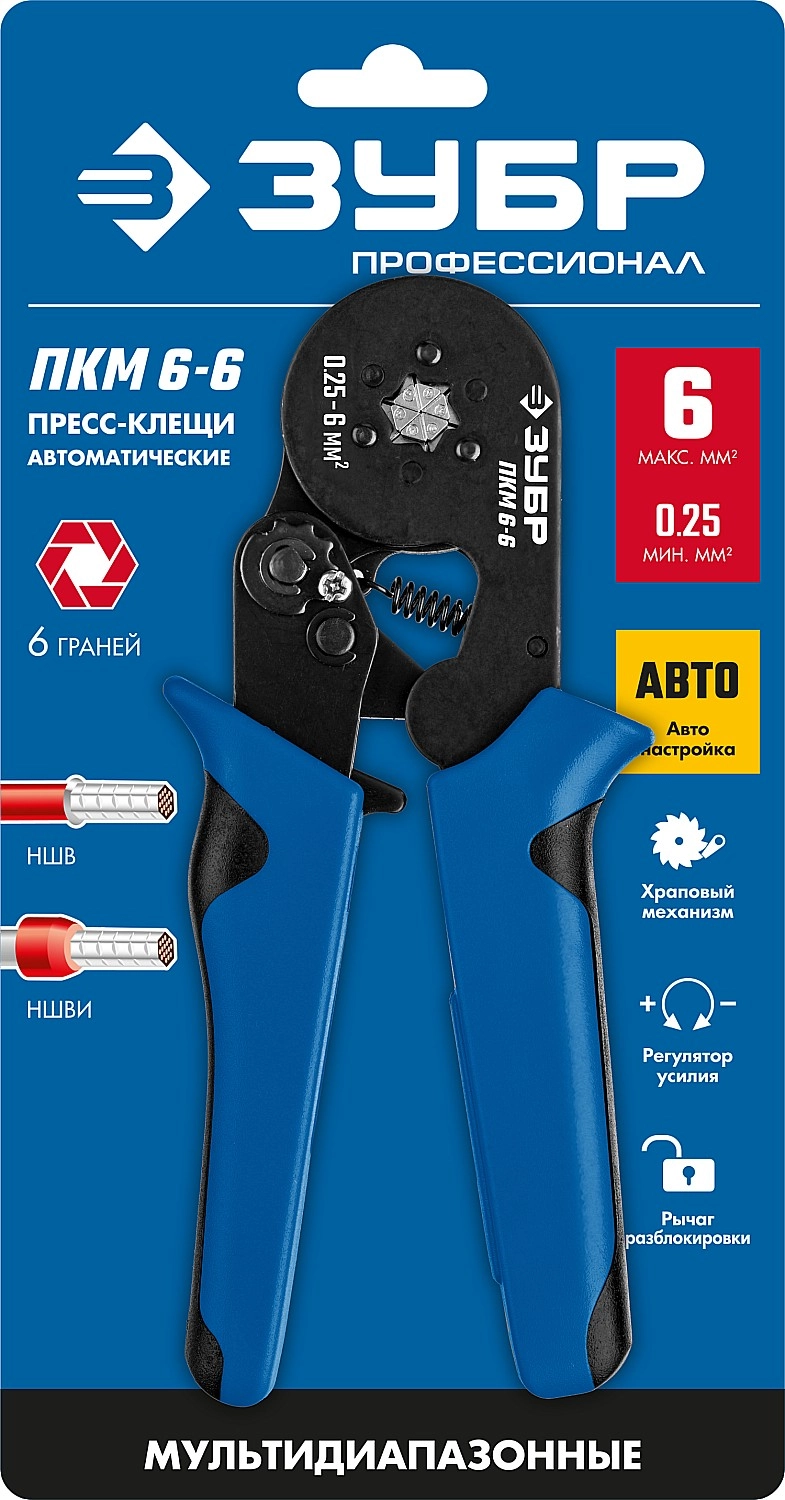 ПроизводителиПресс-клещи для втулочных наконечников 0.25 - 6 мм.кв "ПКМ-6-6""Профессионал" (22654_z01) ЗУБР