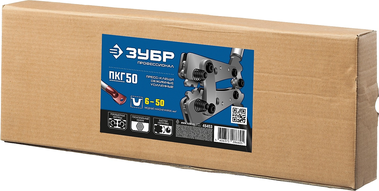 ПроизводителиПресс-клещи гексагональные усиленные для медных наконечников и гильз 6 - 50 мм2 (45453) ЗУБР