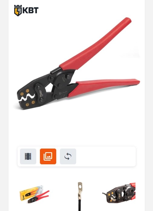 Характеристики КВТ ПК-16м: Диапазон сечений: медные наконечники 2.5–16 мм2 Опрессовка наконечников и гильз любого стандарта Клиновидный обжим Храповой механизм с функцией разблокировки гарантирует полный цикл опрессовки Обработка поверхности: воронение Удлиненные рукоятки Вес: 445 г Длина: 275 мм Характеристики