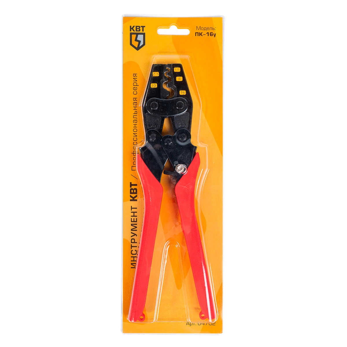 ПК-16у Пресс-клещи для опрессовки неизолированных наконечников, КВТ 64702 — инструмент предназначен для опрессовки однопроволочных и многопроволочных жил