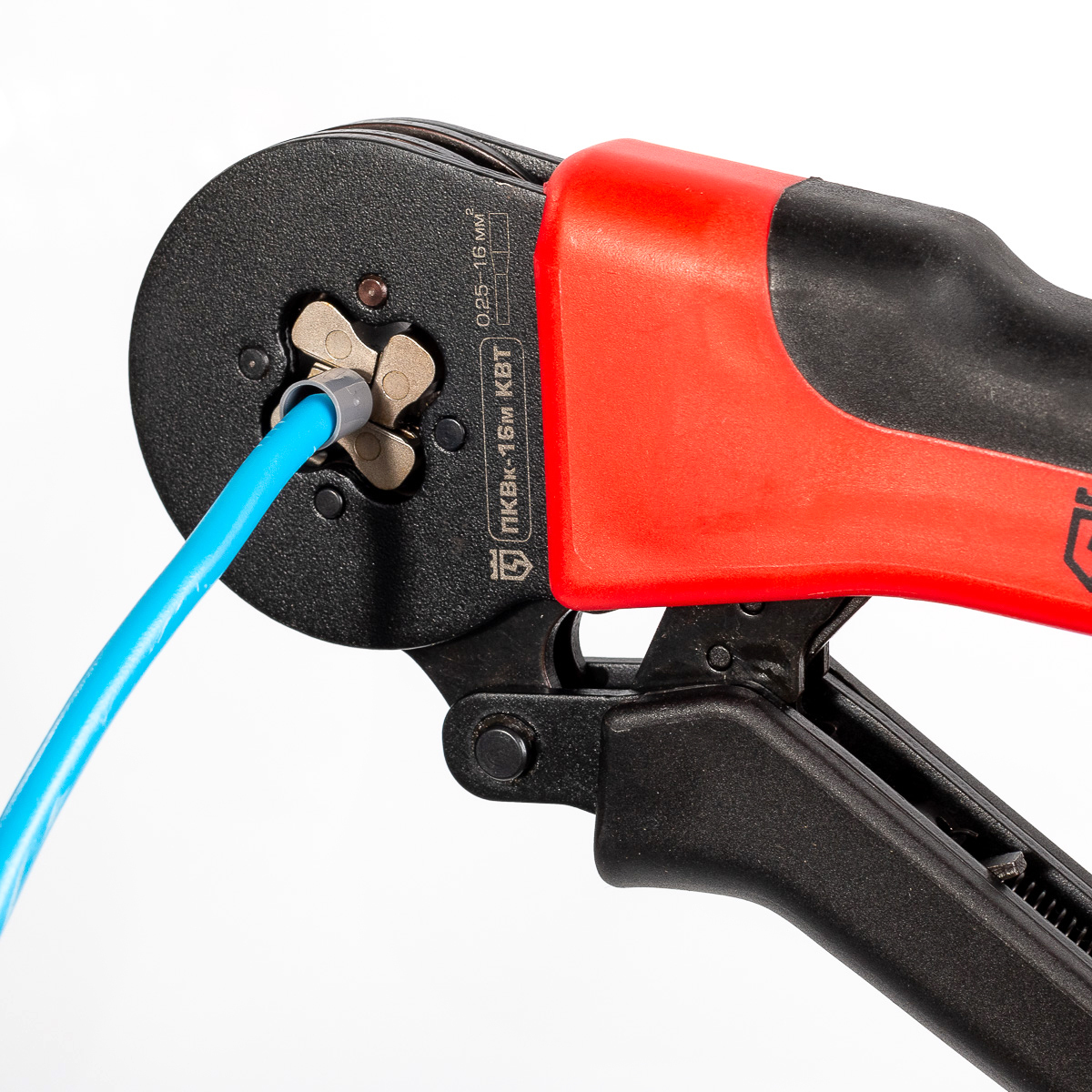 ПКВк-16м Мультидиапазонная эргономичная модель для опрессовки втулочных наконечников, КВТ 79760 — универсальный инструмент для опрессовки практически всего ряда втулочных наконечников. Уникальное, стойкое к абразии и коррозии тефлоновое покрытие корпуса, обеспечивает долговечность инструмента и исключительный внешний вид