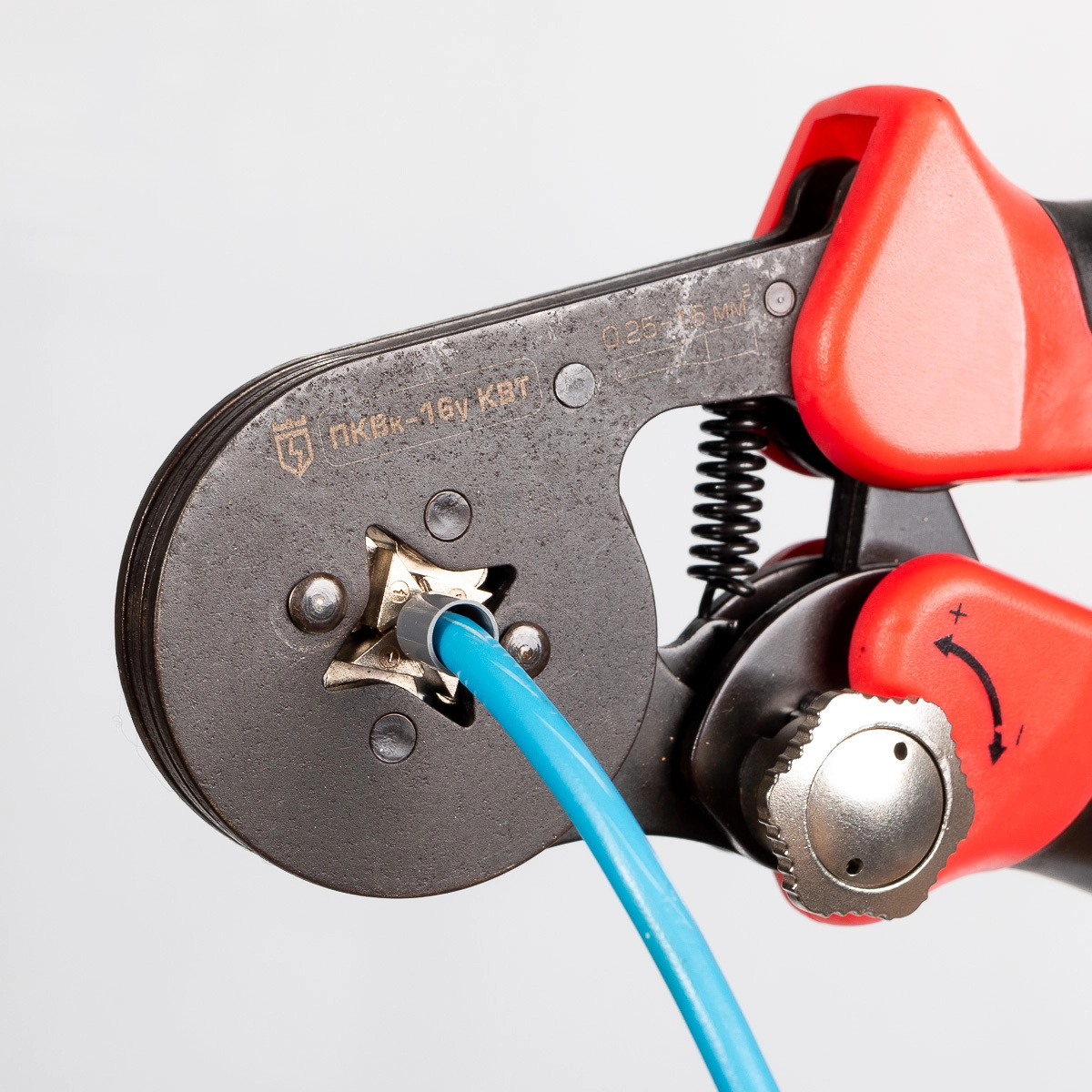 ПКВк-16у Мультидиапазонная усовершенствованная модель для опрессовки втулочных наконечников, КВТ 74594 — универсальный инструмент для опрессовки практически всего ряда втулочных наконечников