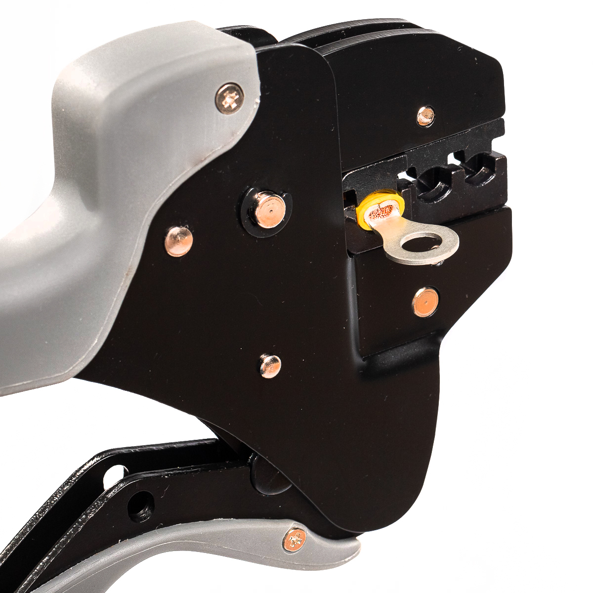 В комплекте: пресс-клещи CTF шестигранный ключ запасные винты для крепления матриц прочный пластиковый кейс набор из 5 сменных матриц: Изолированные наконечники: НКИ, НВИ, НШКИ, НШПИ, РПИ, РППИ-М, РШИ, РПИ-О, ГСИ Сечения: 0.5–6.0 мм2 Трехпозиционная матрица Профиль обжима:овальный двухконтурный Втулочные наконечники: НШВИ, НШВ Сечения: 0.25–6.0 мм2 Восьмипозиционная матрица Профиль обжима:трапециевидный Втулочные наконечники: НШВИ, НШВ Сечения: 6–16 мм2 Трехпозиционная матрица Профиль обжима: трапециевидный Неизолированные наконечники (автоклеммы) Сечения: 0.5–6.0 мм2 Трехпозиционная матрица Профиль обжима: лепестковый двухконтурный Неизолированные медные наконечники Сечения: 0.5–10 мм2 Четырехпозиционная матрица Профиль обжима: клиновидный