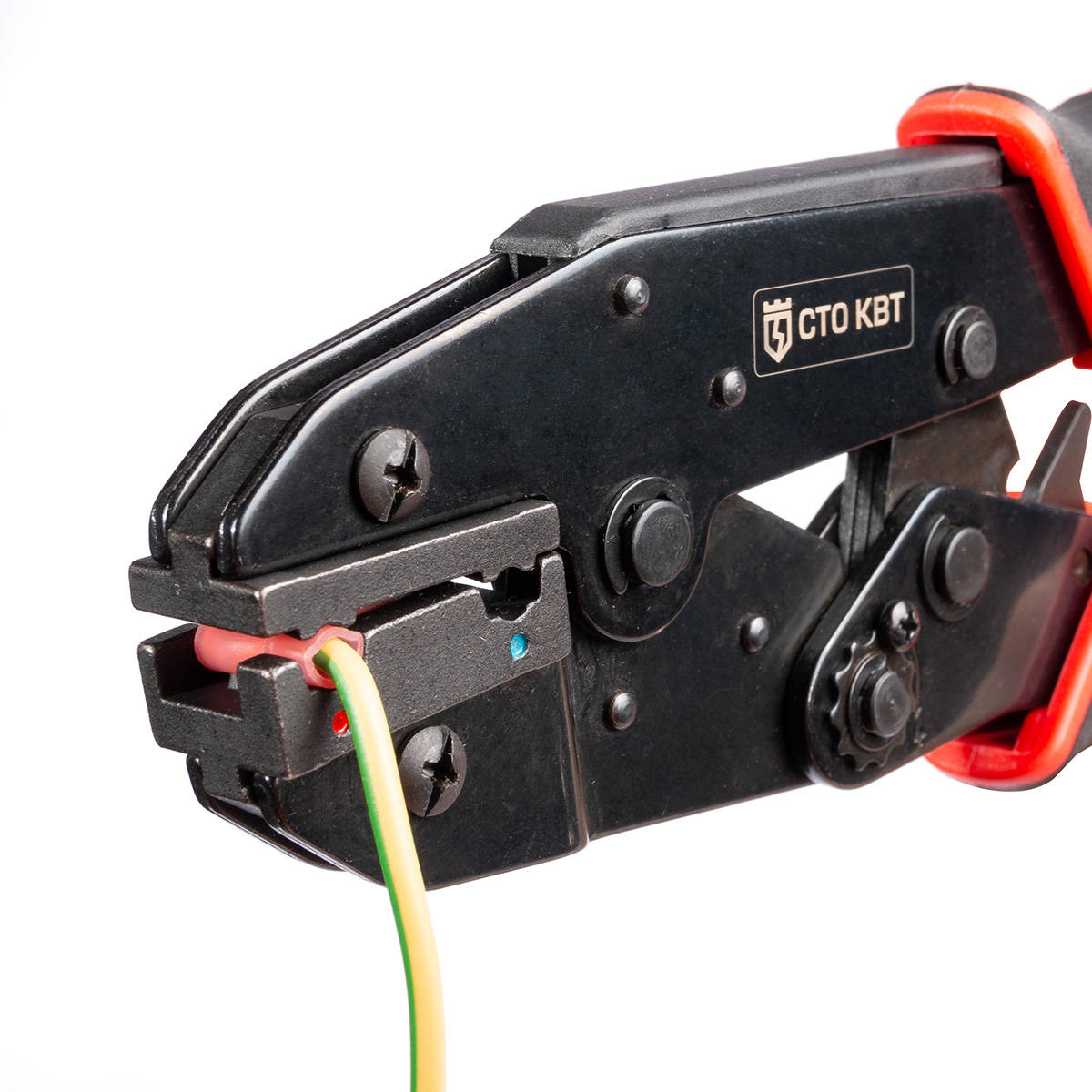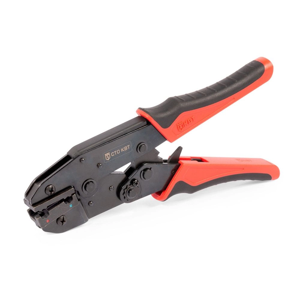 -Длина: 225 мм 90755 СТО-09 серия ПРОФИ (КВТ) пресс-клещи механический быстросменная/ двухпозиционная изолированные разъемы Опрессовка флажковых разъемов в нейлоновом корпусе РФИ-М(н) сечением 0.25