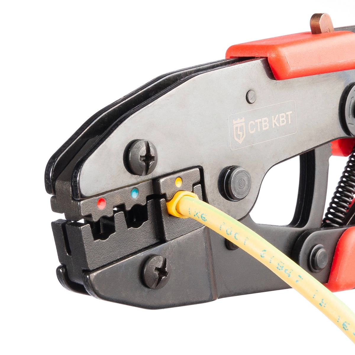 СТВ-11 Пресс-клещи для опрессовки наконечников, КВТ 74852 — кримпер для опрессовки изолированных разъемов с красной, синей и желтой манжетами