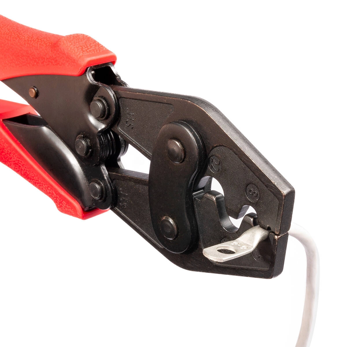 Диапазон сечений: медные наконечники 2.5 – 25 мм². 4-позиционные опрессовочные губки. Опрессовка наконечников и гильз любого стандарта. Клиновидный обжим. Инструмент предназначен для опрессовки однопроволочных и многопроволочных жил. Храповой механизм обеспечивает более высокое передаточное усилие и гарантирует полный цикл опрессовки. Рычаг для экстренной разблокировки матриц. Обработка поверхности: воронение.Производитель: КВТ, Россия, Калуга