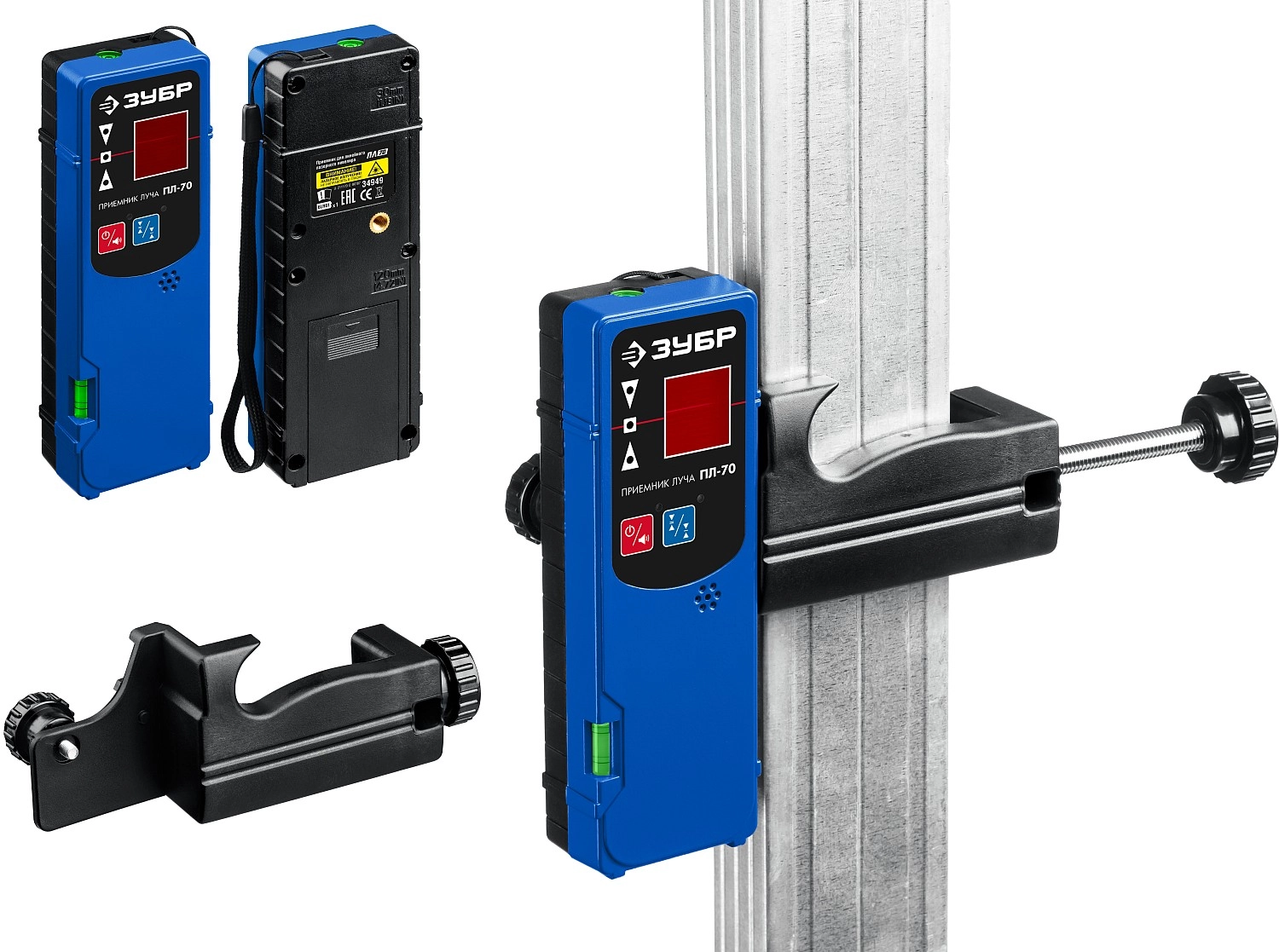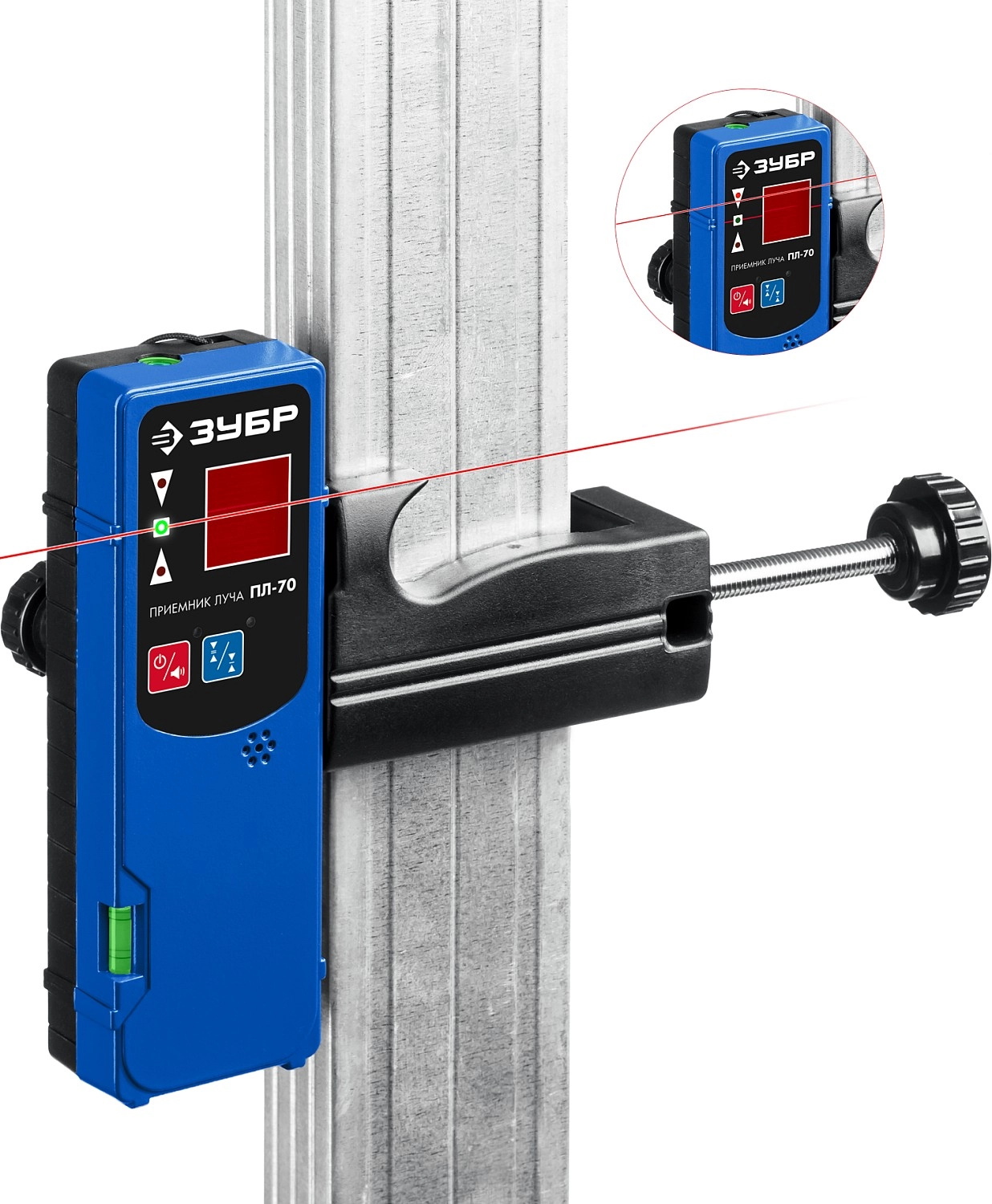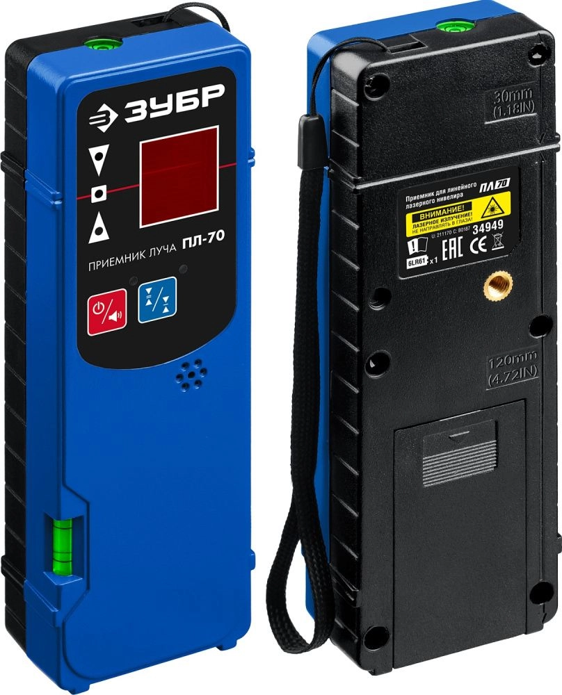 ПроизводителиПриемник для линейного нивелира, 70м, точн. +-1 мм/м "ПЛ-70" (34949) ЗУБР