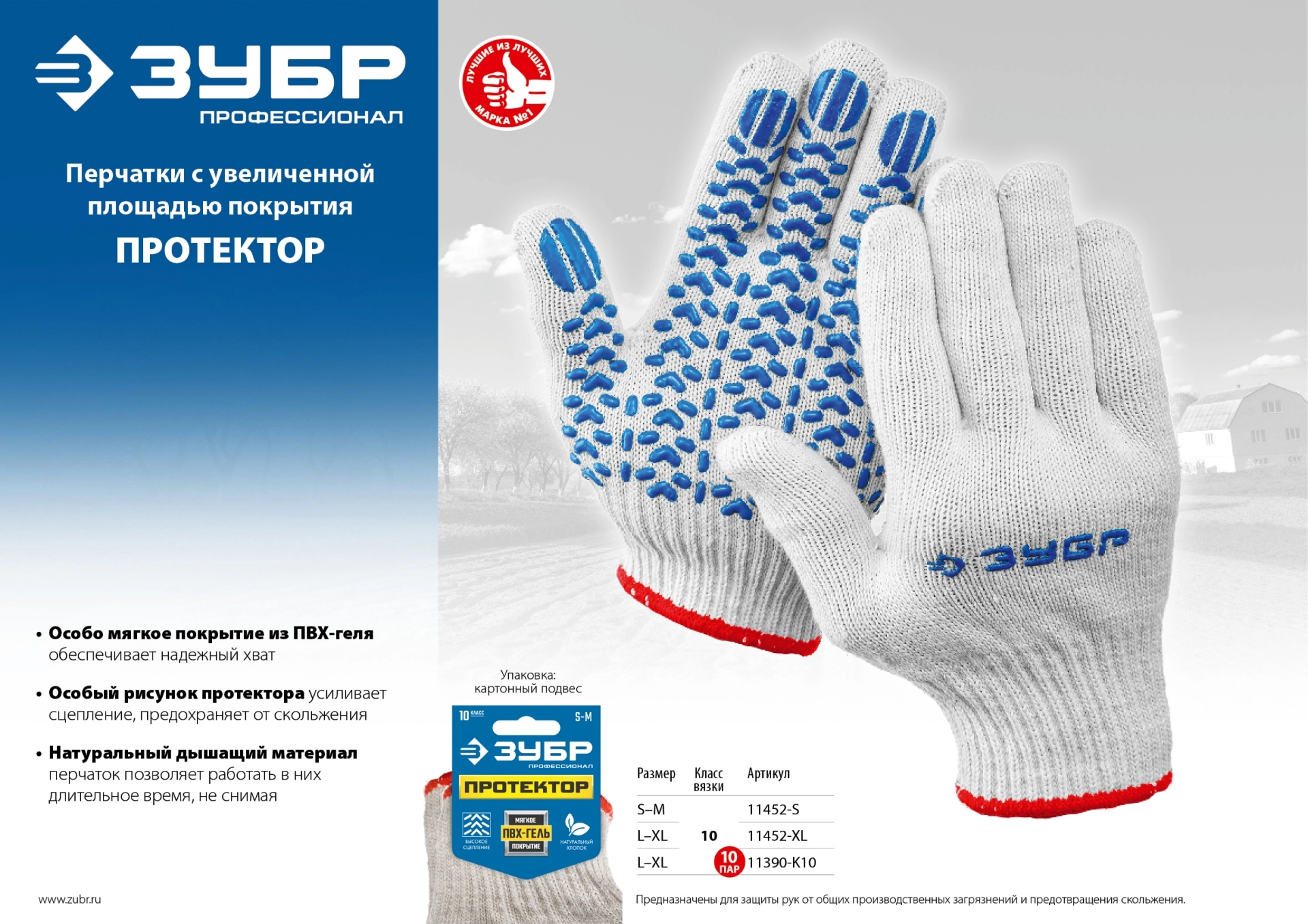 ПроизводителиПРОТЕКТОР, размер L-XL, перчатки трикотажные, с ПВХ покрытием, 11452-XL (11452-XL) ЗУБР