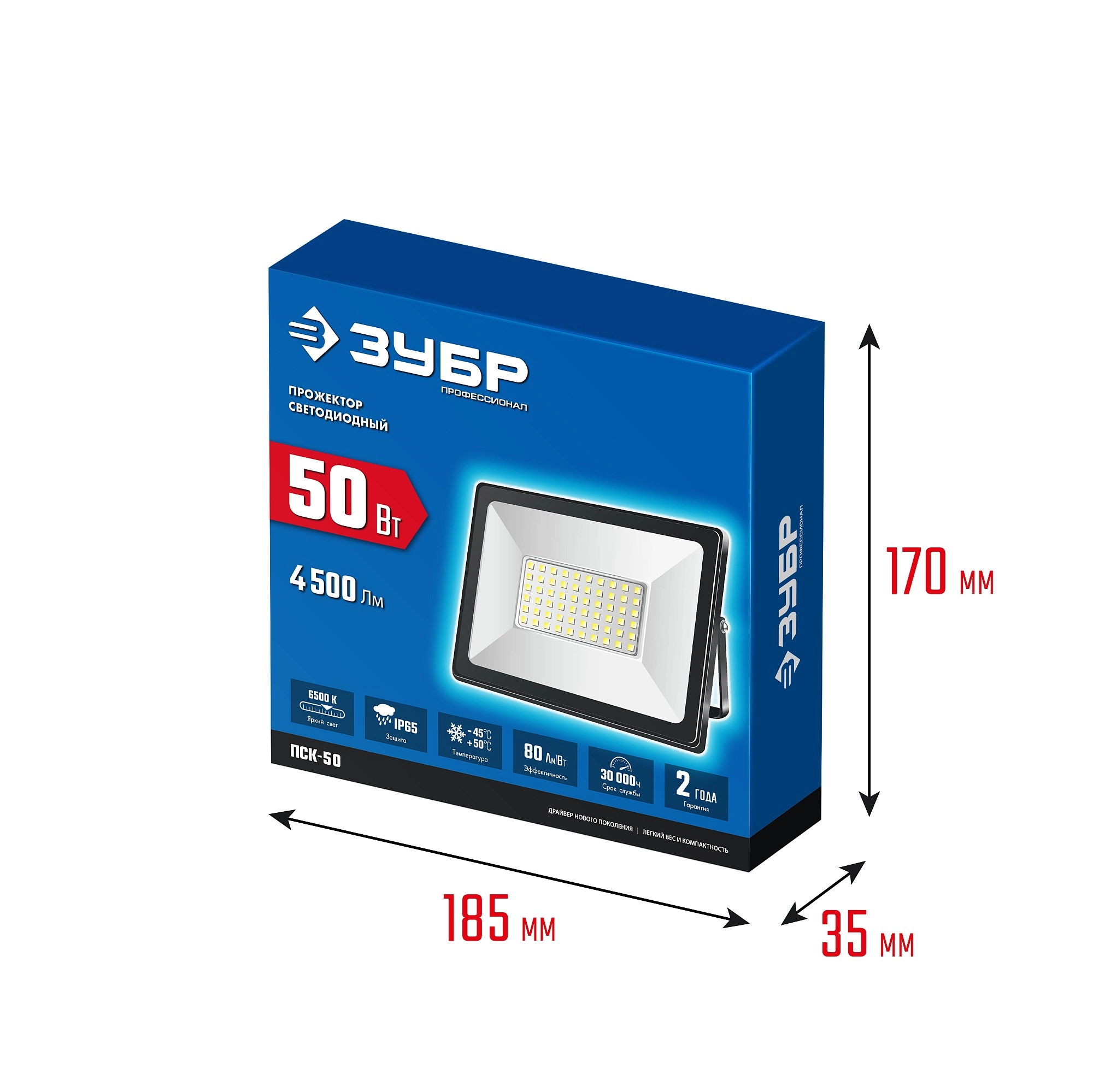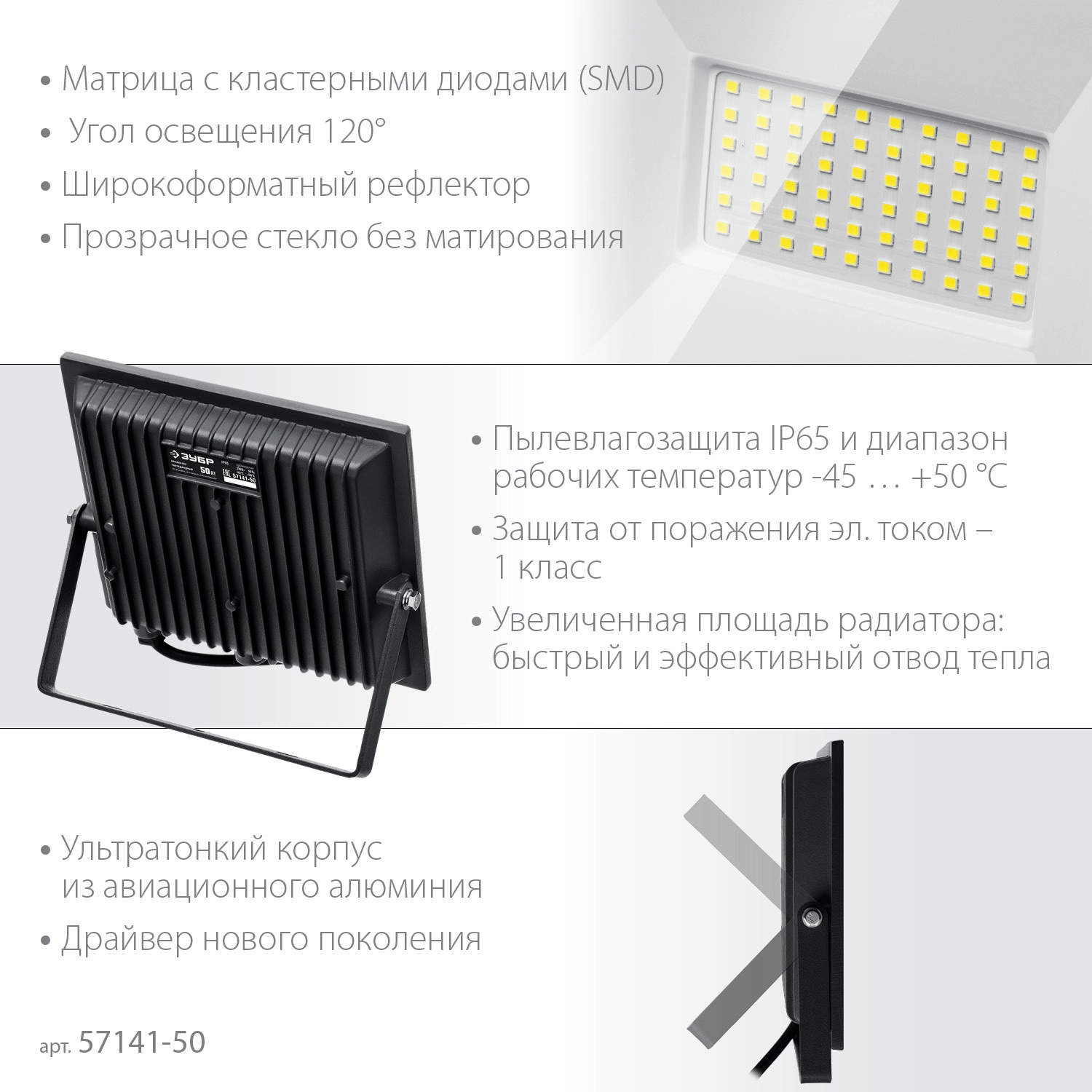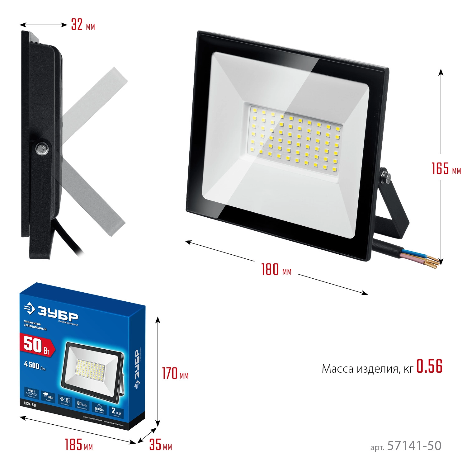 ПроизводителиПрожектор светодиодный 50 Вт, 6500K, IP 65 "Профессионал" (57141-50) ЗУБР