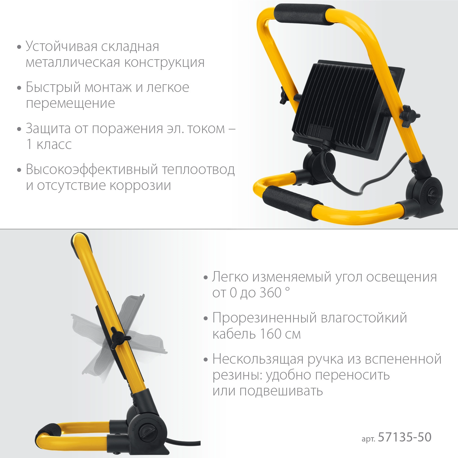 ПроизводителиПрожектор светодиодный переносной 50 Вт, 6500K, IP 65 LED-MAX (57135-50) STAYER