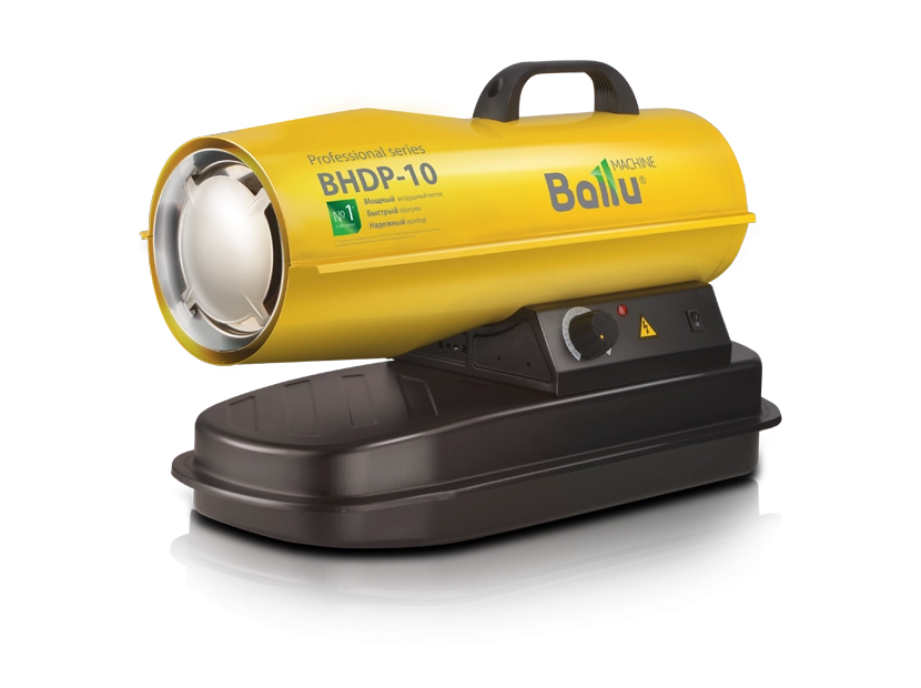 ХарактеристикиАртикул Ballu BHDP-10Бренды BALLUСтрана производства РоссияТип дизельнаяРасход топлива, л/час 0.8Мощность, кВТ 10Площадь обогрева, м² 100Производительность 590Вес 10.5Напряжение сети 220-240Нагрев прямойРасход топлива 1.25Ёмкость бака 12Напряжение 220 ВТермостат естьЗащитное отключение естьПредварительный разогрев топлива нетДлина 28Ширина 68Высота 40Описание товара обновлено 08.12.2025 15:39:10Тепловая дизельная пушка Ballu BHDP-10 серии Tundra – мощный обогреватель с объемом бака 12 литров.Уникальная запатентованная форма корпуса моделирует направленный горячий поток воздуха при обогреве нежилых помещений и открытых рабочих пространств даже в самых суровых климатических условиях.Уровень КПД прибора близок к 100%, а тепловая мощность достигает 10 кВт. тепловая пушка оснащена встроенным термостатом повышенной чувствительности для работы в автономном режиме с поддержанием заданной температуры. Теплоотражающий стальной экран поддерживает равномерный нагрев. Максимальная безопасность и контроль обеспечивается с помощью электронной платы управления, температурного датчика, фотоэлемента.Производитель: ПК БАЛЛУ Россия, Москва, ул. Нарвская 21