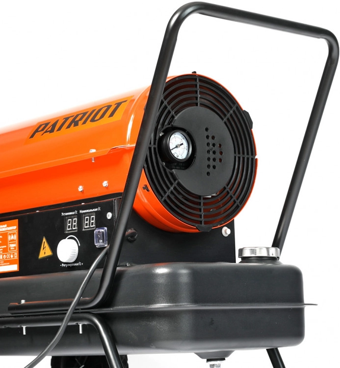 ПРОФИУровень качества. При классификации продуктов, имеющих схожее наименование, но обладающие различными потребительскими свойствами мы приняли следующий Вес факторов: 80% - подтвержденный ресурс, 15% - заявленная производительность/скорость, 5% - субъективные ощущения потребителя. ПодробнееКод товара: 0074704(0)ХарактеристикиАртикул 633703023Бренды PATRIOTСтрана производства КитайГарантия 24 месяцевТип дизельнаяМощность, кВТ 30Назначение для открытого пространства, для помещенияЦвет оранжевыйМатериал корпуса металлСтепень защиты IPX4Площадь обогрева, м² 900Производительность 588Регулировка температуры ДаВес 16.335Напряжение сети 220-240Термопредохранитель ДаНагрев прямойРасход топлива 1.85Ёмкость бака 19Напряжение 220 ВПлощадь обогрева 600Термостат естьЗащитное отключение естьТип управления электронноеПредварительный разогрев топлива нетДлина 28Ширина 38Высота 15Колеса ДаИспользуемое топливо дизельное топливо/керосинИндикатор включения ДаПодставка ДаОписание набора Тепловая пушка дизельная - 1 шт./ Колесо - 2 шт./ Рама - 1 шт./ Рукоятка - 1 шт./ Воронка - 1 шт./ Инструкция по эксплуатации.Ширина в упаковке 79Сетевой кабель с вилкой ДаВысота в упаковке 45Глубина в упаковке 38Ручка для переноски ДаРазмещение напольноеОписание товара обновлено 08.12.2025 15:37:36Вид топлива - дизельное топливо/керосин