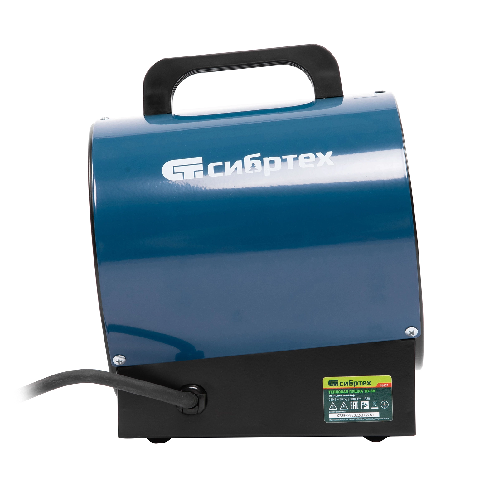 ПроизводителиПушка тепловая ТВ-3М (тепловентилятор), 230 В, 3 реж. вентилятор, 1500/3000 Вт Сибртех