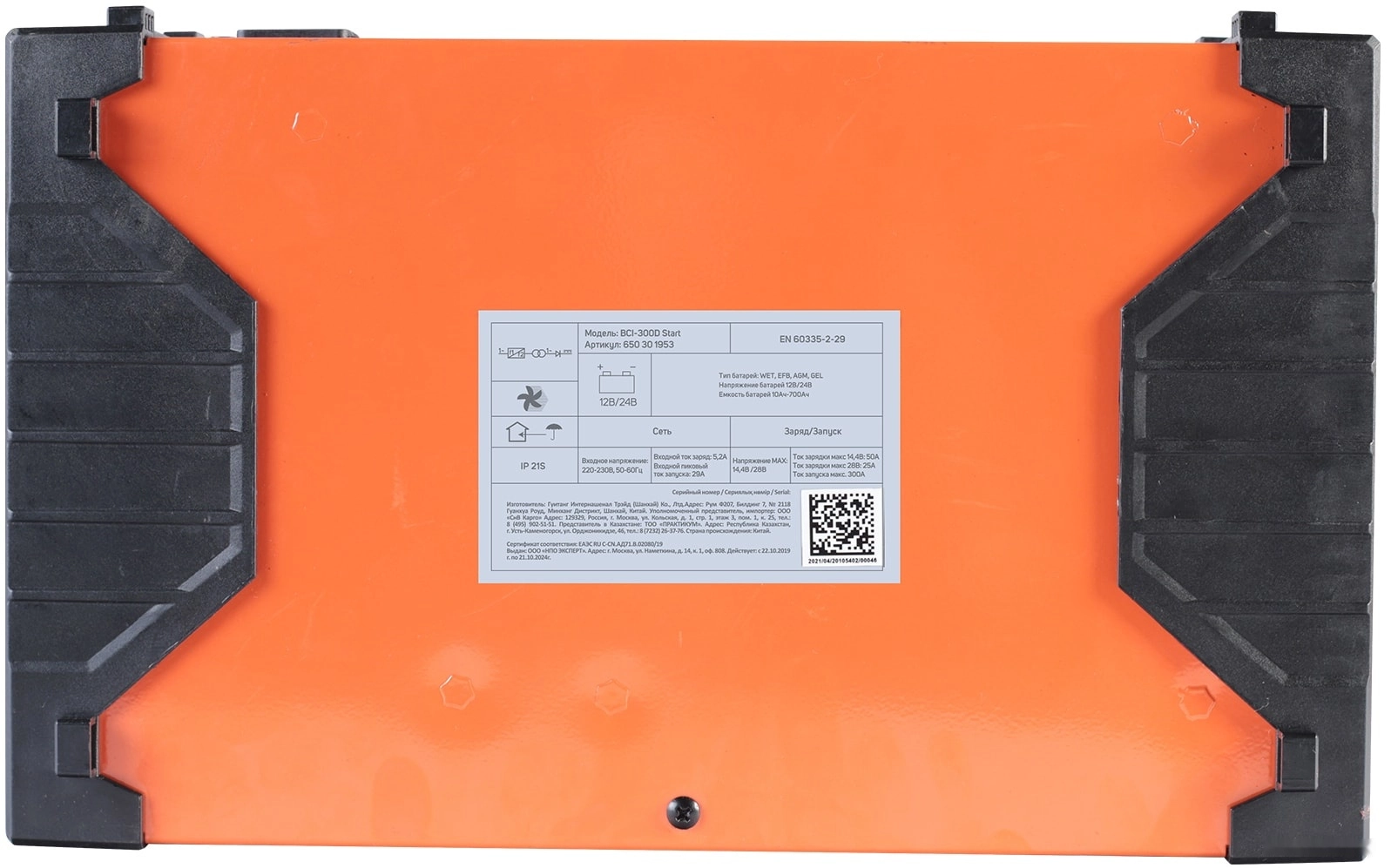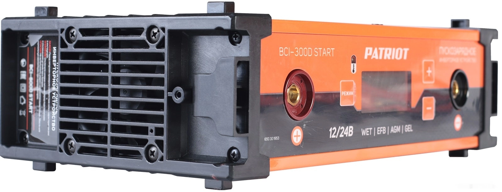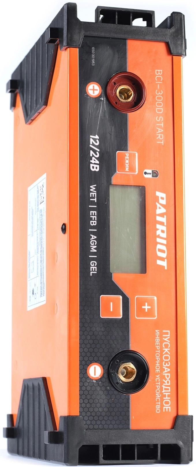 ПРОФИУровень качества. При классификации продуктов, имеющих схожее наименование, но обладающие различными потребительскими свойствами мы приняли следующий Вес факторов: 80% - подтвержденный ресурс, 15% - заявленная производительность/скорость, 5% - субъективные ощущения потребителя. ПодробнееКод товара: 0062414(0)ХарактеристикиАртикул 650301953Бренды PATRIOTСтрана производства КитайГарантия 24 месяцевГабариты (ШхВхГ),мм 250х360х150Тип пуско-зарядноеНапряжение аккумулятора 12/24Цвет черныйТемпературный режим использования ˚С от -10 до +40Емкость аккумулятора 50Длина сетевого шнура 1.5Защита от перегрева естьКоличество заряжаемых аккумуляторов, шт 1Наличие дисплея естьЗащита от перегрузки естьЗащита от неправильного подключения естьКоличество ступеней зарядки 0Вес 4.6Мин. Емкость заряжаемых батарей 10Номинальное напряжение батареи 12Мин. Ток зарядки 5Макс. Емкость заряжаемых батарей 700Макс. Ток зарядки 50Потребляемая мощность на заряд 770Максимальный пусковой ток 300Напряжение 220Ширина в упаковке 36Высота в упаковке 25Глубина в упаковке 16Описание товара обновлено 28.01.2026 17:04:13Преимущества пускозарядного устройства Patriot BCI-300D-Start Зарядка разных типов батарей (WET, EFB, AGM, GEL), а также необслуживаемых АКБ Пускозарядное инверторное устройство PATRIOT BCI-300D-Start гарантирует эффективный запуск автомобиля Большой диапазон и плавная установка тока Зарядка АКБ без отключения и снятия с автомобиля Ускоренная зарядка Режимы хранения и восстановления батарей Защита от перегрузки, коротких замыканий, обратной полярности и неправильного напряженияПроизводитель: 11th Flooor,LiYuanShangdu Building A2,201# LanTian Road,NingBo China