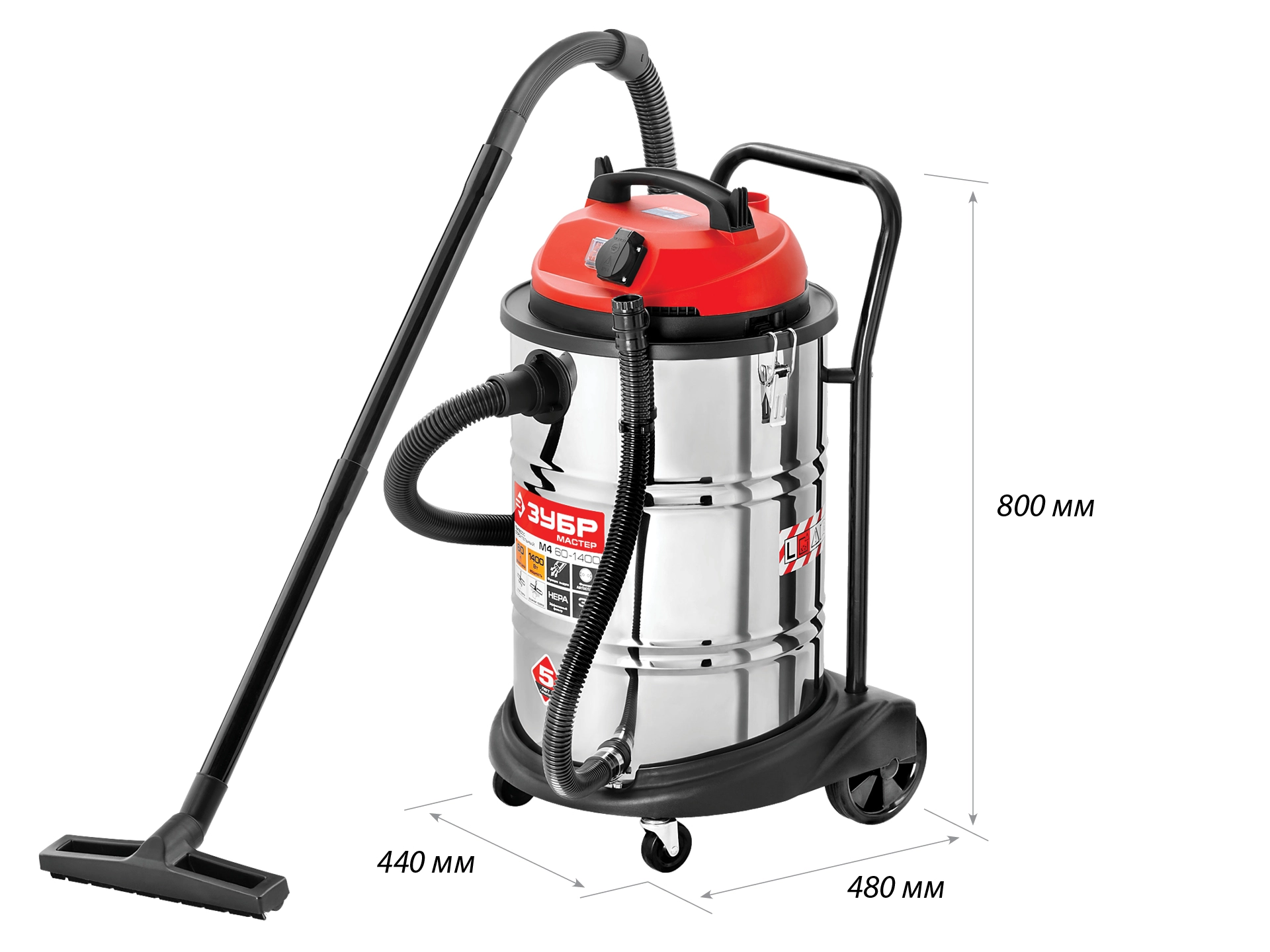 СТАНДАРТУровень качества. При классификации продуктов, имеющих схожее наименование, но обладающие различными потребительскими свойствами мы приняли следующий Вес факторов: 80% - подтвержденный ресурс, 15% - заявленная производительность/скорость, 5% - субъективные ощущения потребителя. ПодробнееКод товара: 0031893(5)Строительный пылесос ЗУБР предназначен для уборки помещений, а также для принудительного удаления продуктов пиления, строгания, фрезерования и т.п. из рабочей зоны электроинструмента. Он незаменим для поддержания чистоты в гараже, мастерской, удаления мусора во время ремонта в квартире или на даче. Бак из нержавеющей стали объемом 60 л очень долговечен. а синхронное включение с инструментом, подключенным через розетку пылесоса позволит сохранить чистоту на рабочем месте.ХарактеристикиАртикул ПУ-60-1400 М4Бренды ЗубрСтрана производства КитайПотребляемая мощность 1400Длина сетевого шнура 4Вес 13.91Строительный пылесос ЗУБР предназначен для уборки помещений, а также для принудительного удаления продуктов пиления, строгания, фрезерования и т.п. из рабочей зоны электроинструмента. Он незаменим для поддержания чистоты в гараже, мастерской, удаления мусора во время ремонта в квартире или на даче.