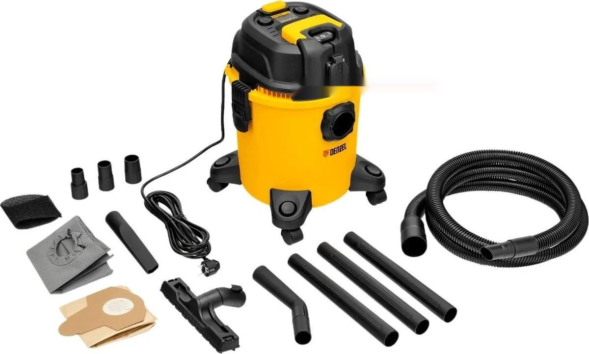 Бренд: DENZELПылесос строительный Denzel RVC20 28202 мощностью 1400 Вт, с баком объемом 20 л и шлангом длиной 3 м, оснащен розеткой с автосинхронизацией и предназначен для уборки бетонной, кирпичной пыли, опилок, стружки, также предусмотрена функция сбора воды. К пылесосу можно подключить электроинструмент, чтобы минимизировать количество пыли, образующейся в результате пиления, сверления, фрезерования. Техника используется во время проведения строительных и ремонтных работ, будет полезна для поддержания чистоты в мастерской, гараже, производственном помещении.