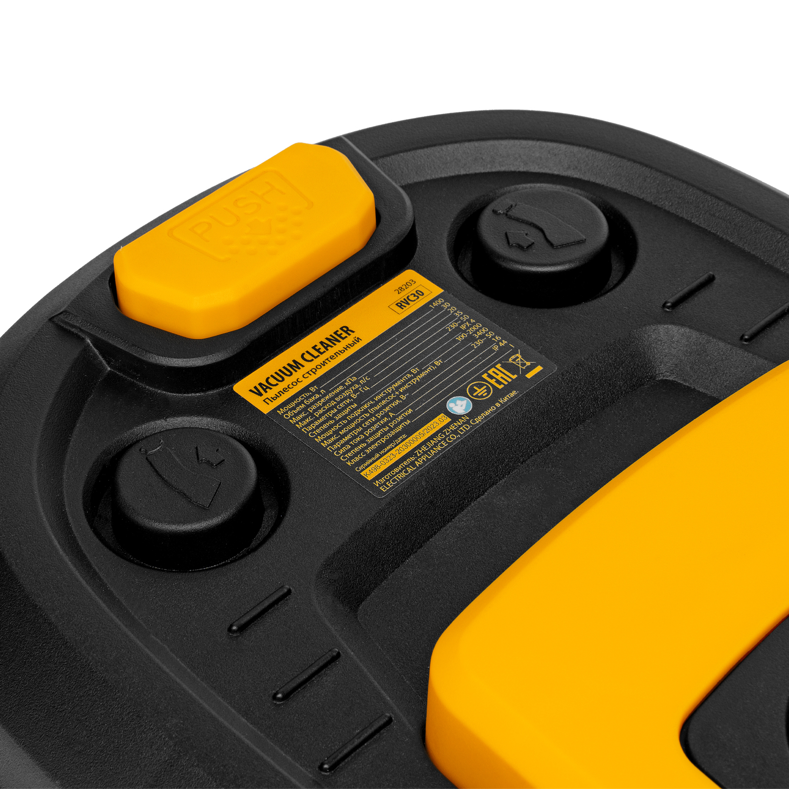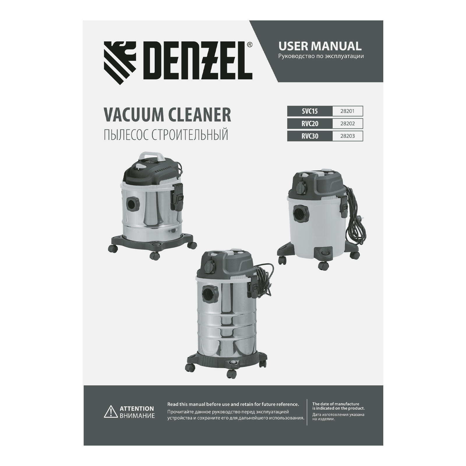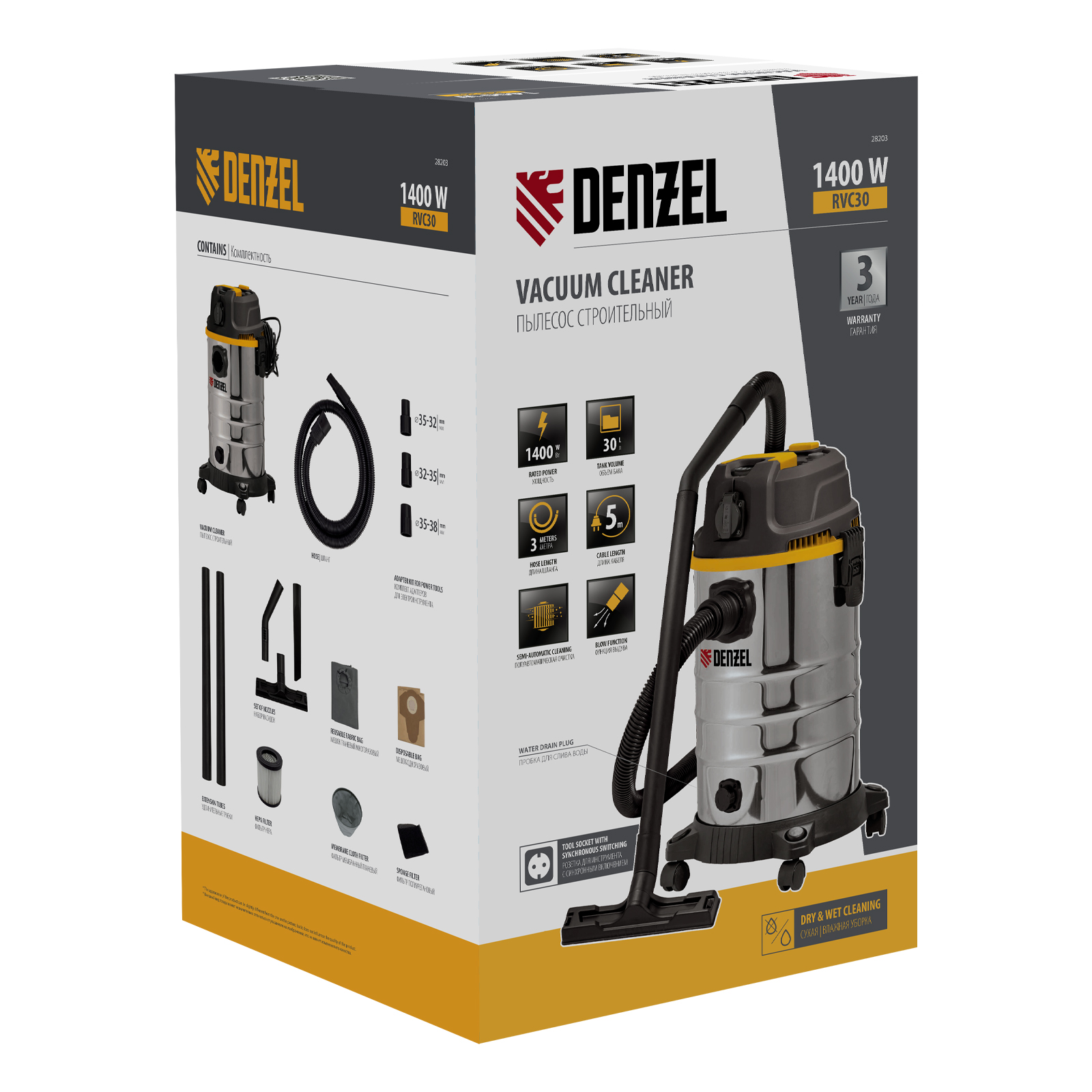ПроизводителиПылесос строительный RVC30 (1400 Вт, объем 30 л, шланг 3 м, сухая и влажная уборка) DENZEL