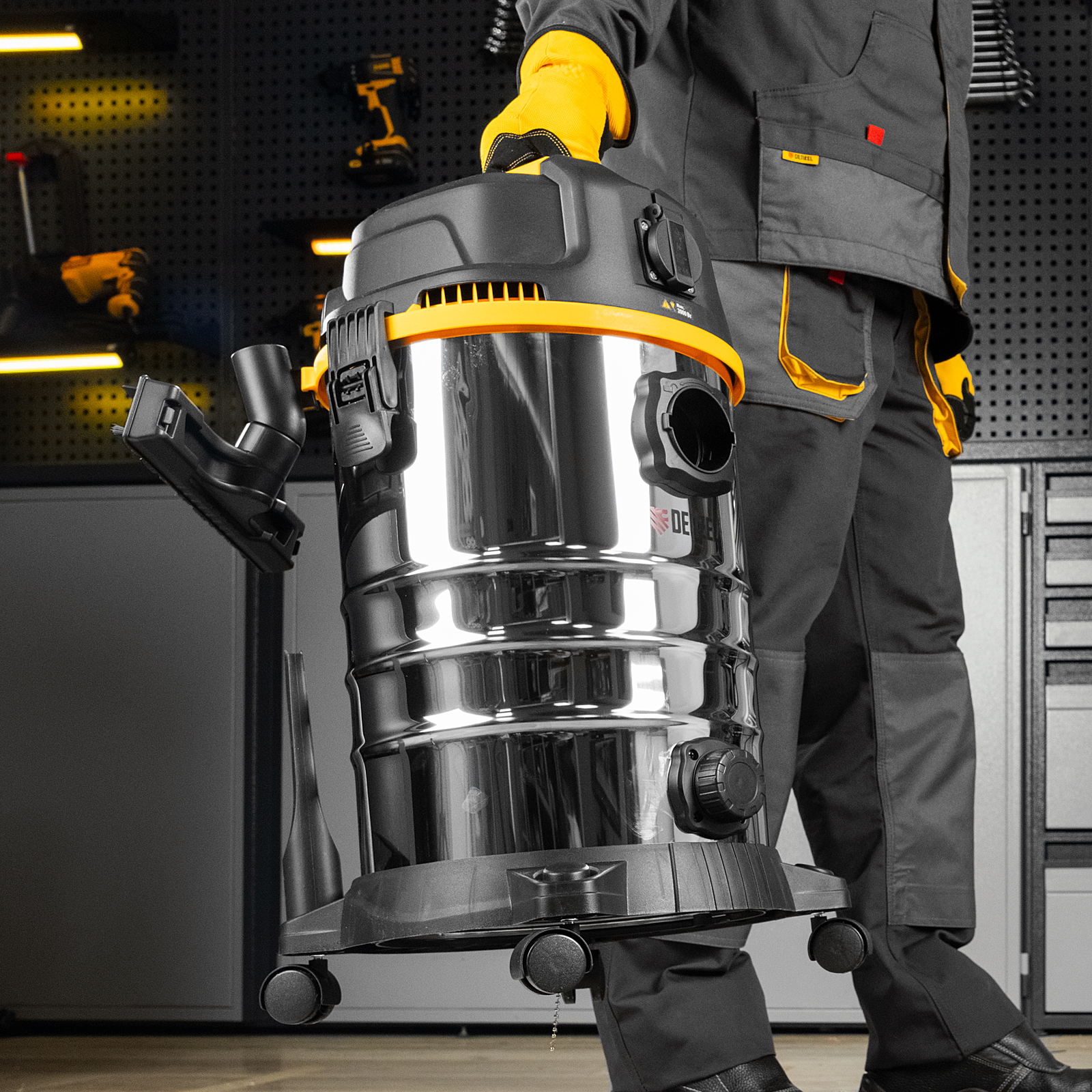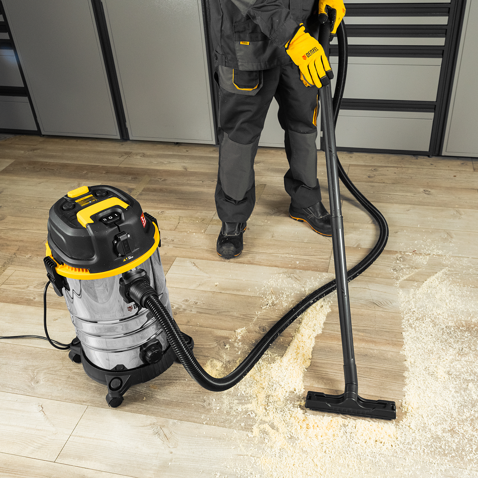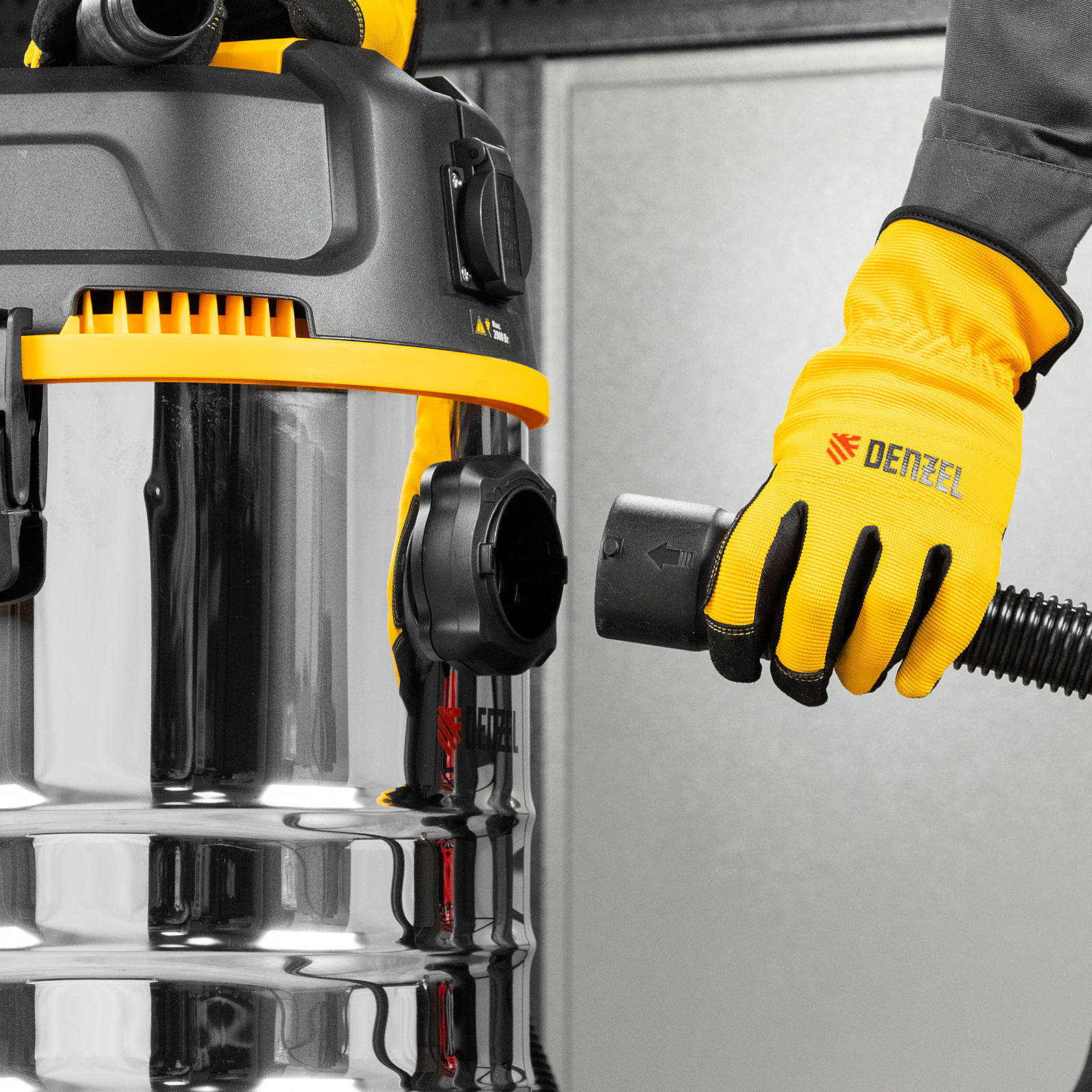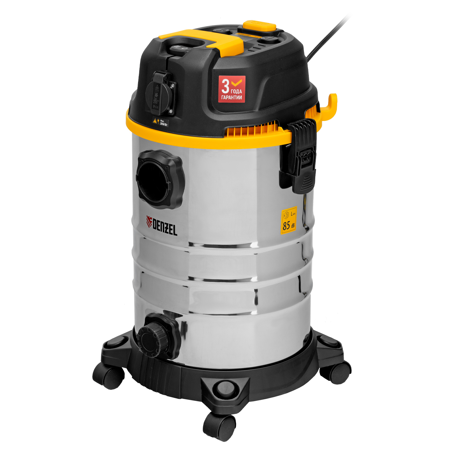ПроизводителиПылесос строительный RVC30 (1400 Вт, объем 30 л, шланг 3 м, сухая и влажная уборка) DENZEL