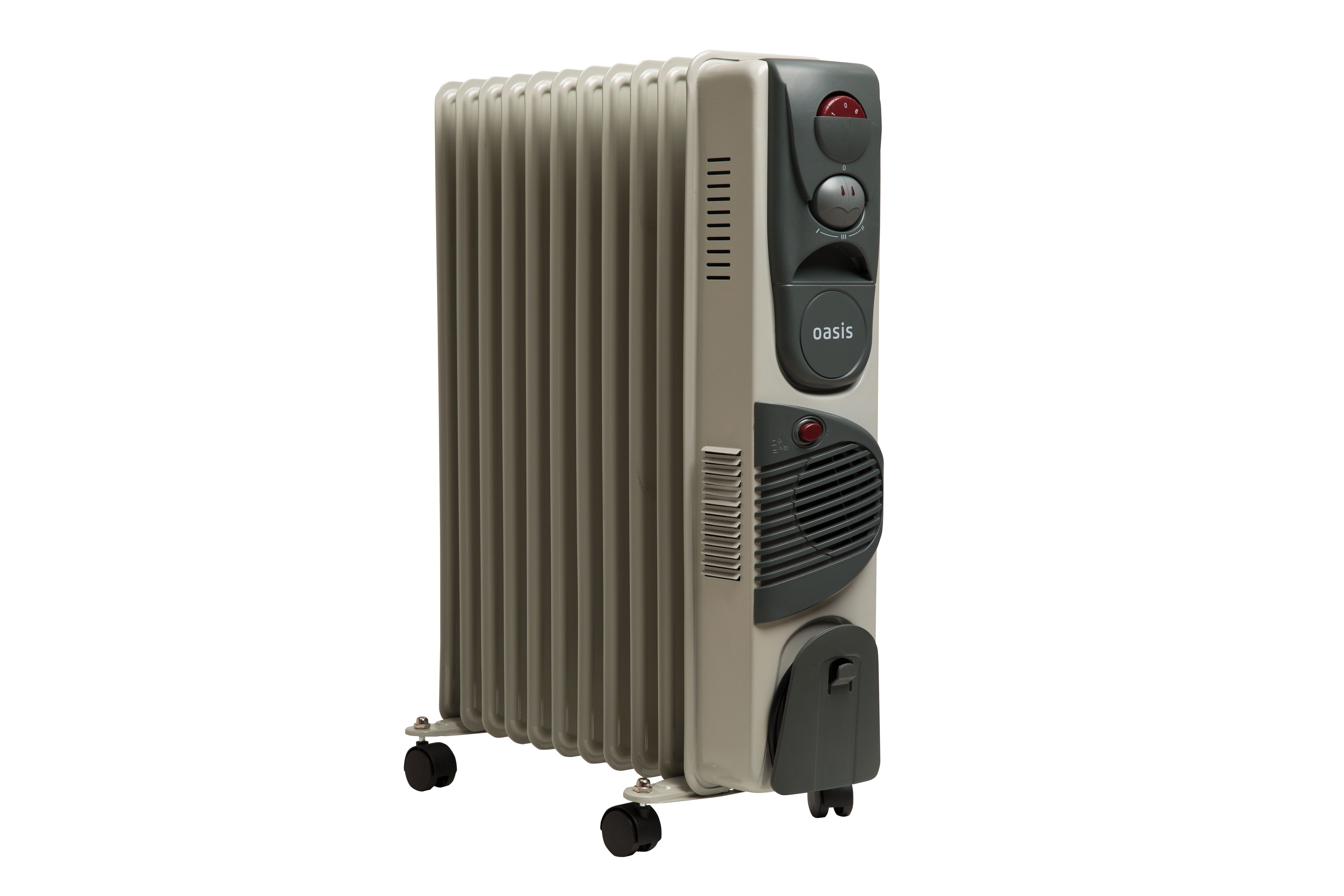 ХарактеристикиАртикул BВ-25Т OasisБренды OASISСтрана производства КитайГарантия 12 месяцевМощность, кВт 2.5Площадь обогрева, м² 30Напряжение сети, В 220-240Масляный радиатор отопления с вентилятором Oasis - электрический отопительный прибор, предназначенный для обогрева помещений. Основу устройства составляет металлический корпус, заполненный минеральным маслом, и ТЭН, который нагревает масло. От классических моделей радиатор отличается наличием вентилятора, который при включении быстро распространяет тёплый воздух по комнате. После прогрева вентилятор можно отключить для бесшумного обогрева.
