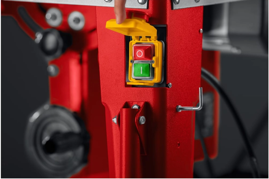 Защитный кожух диска автоматически откидывается при подаче заготовки и защищает оператора от травм