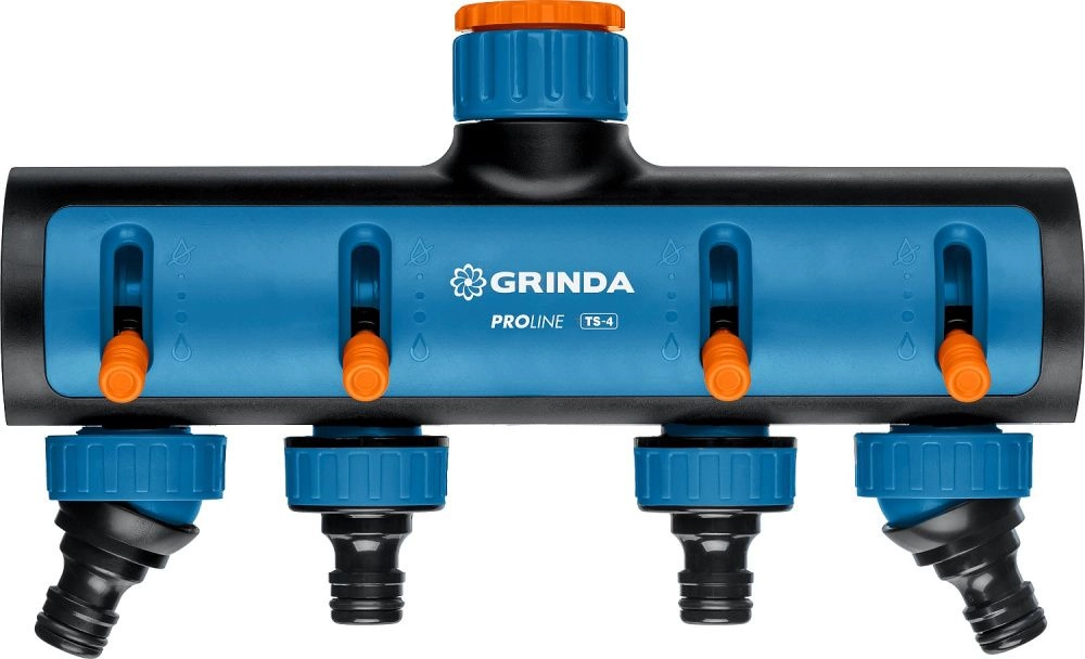 ПроизводителиРаспределитель поливочный, четырехканальный 3/4″ - 1″ (8-426313_z02) GRINDA