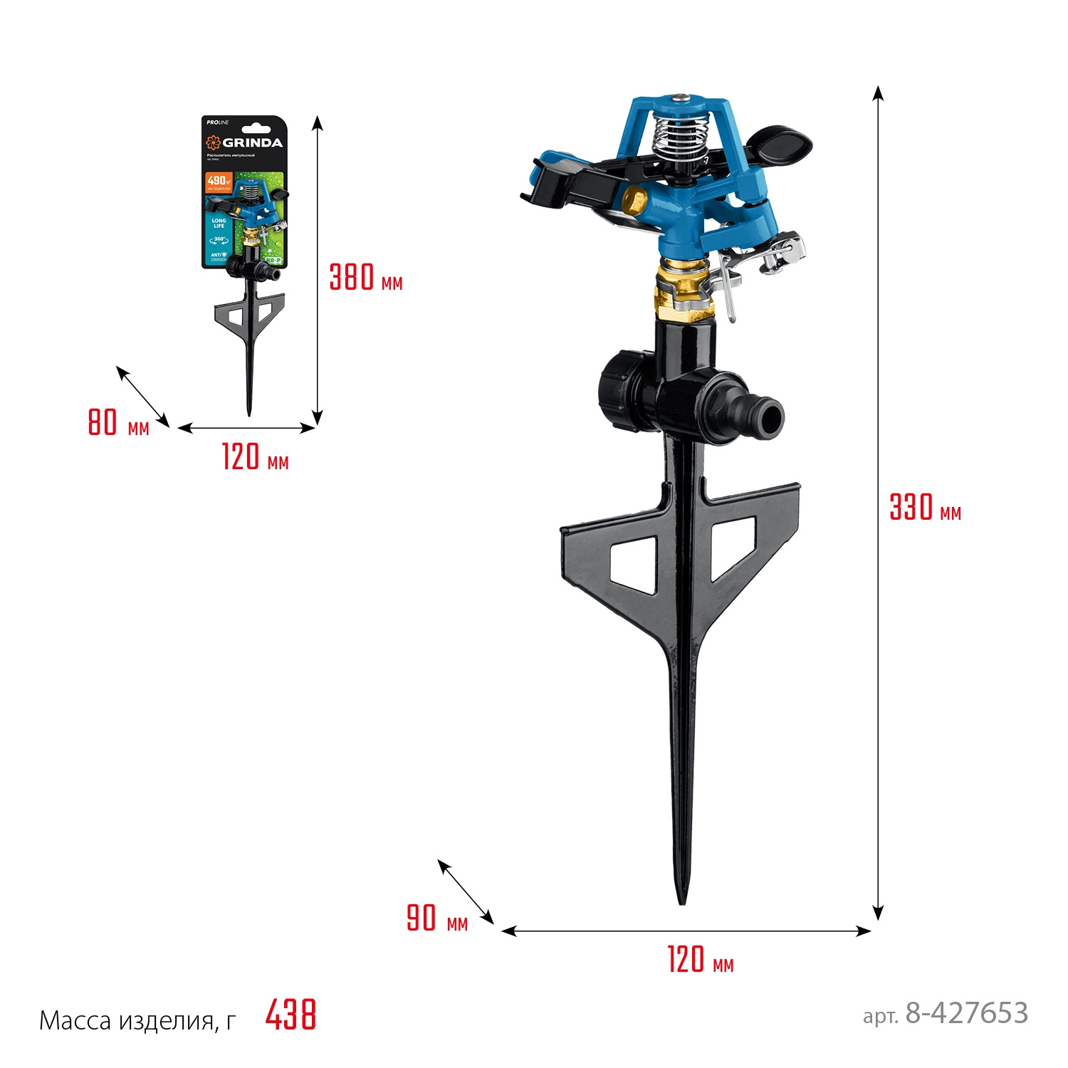 ПроизводителиРаспылитель импульсный, 3/4", латунный, на пике (8-427653_z02) GRINDA