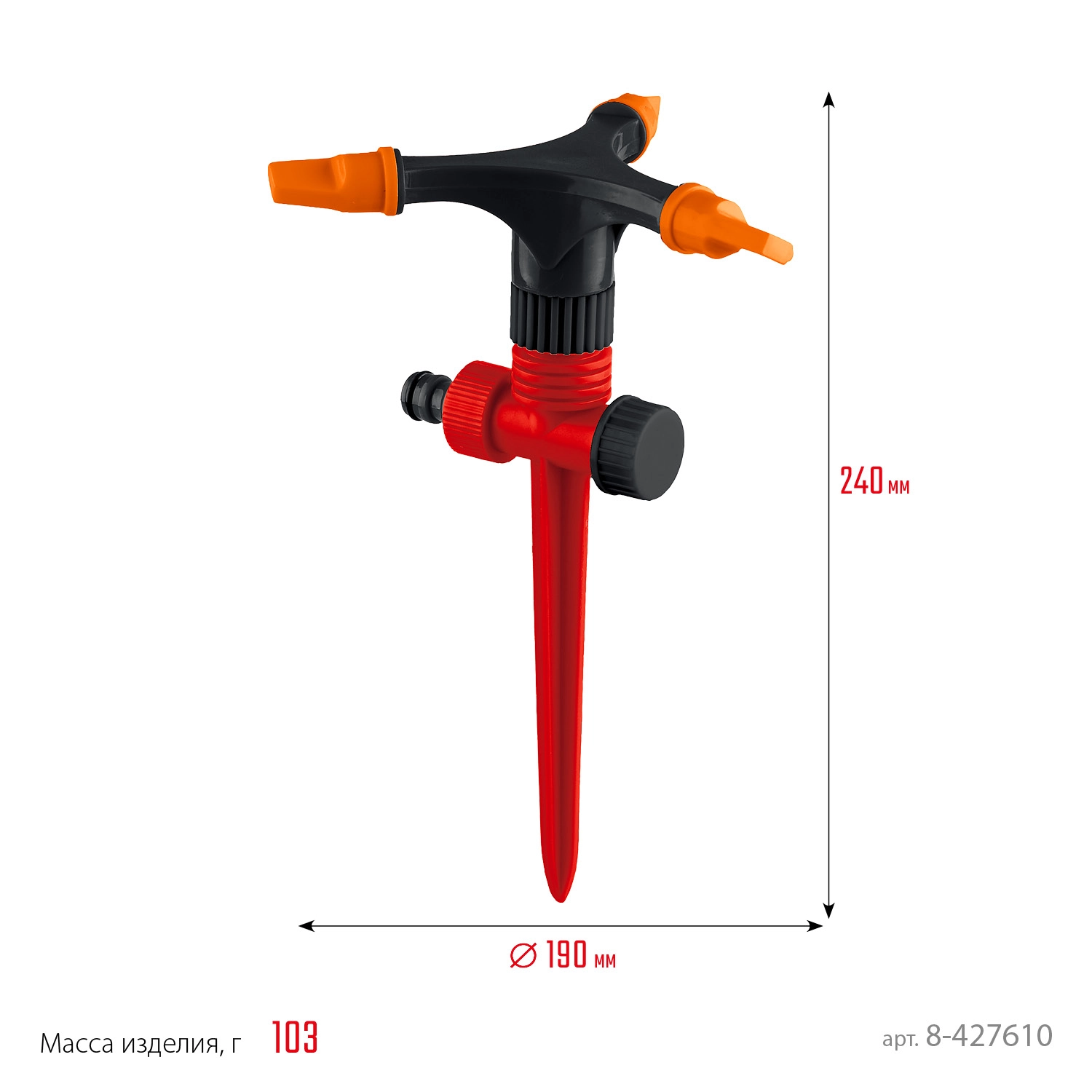 ПроизводителиРаспылитель круговой 3 сопла, на пике, пластиковый (8-427610_z01) GRINDA