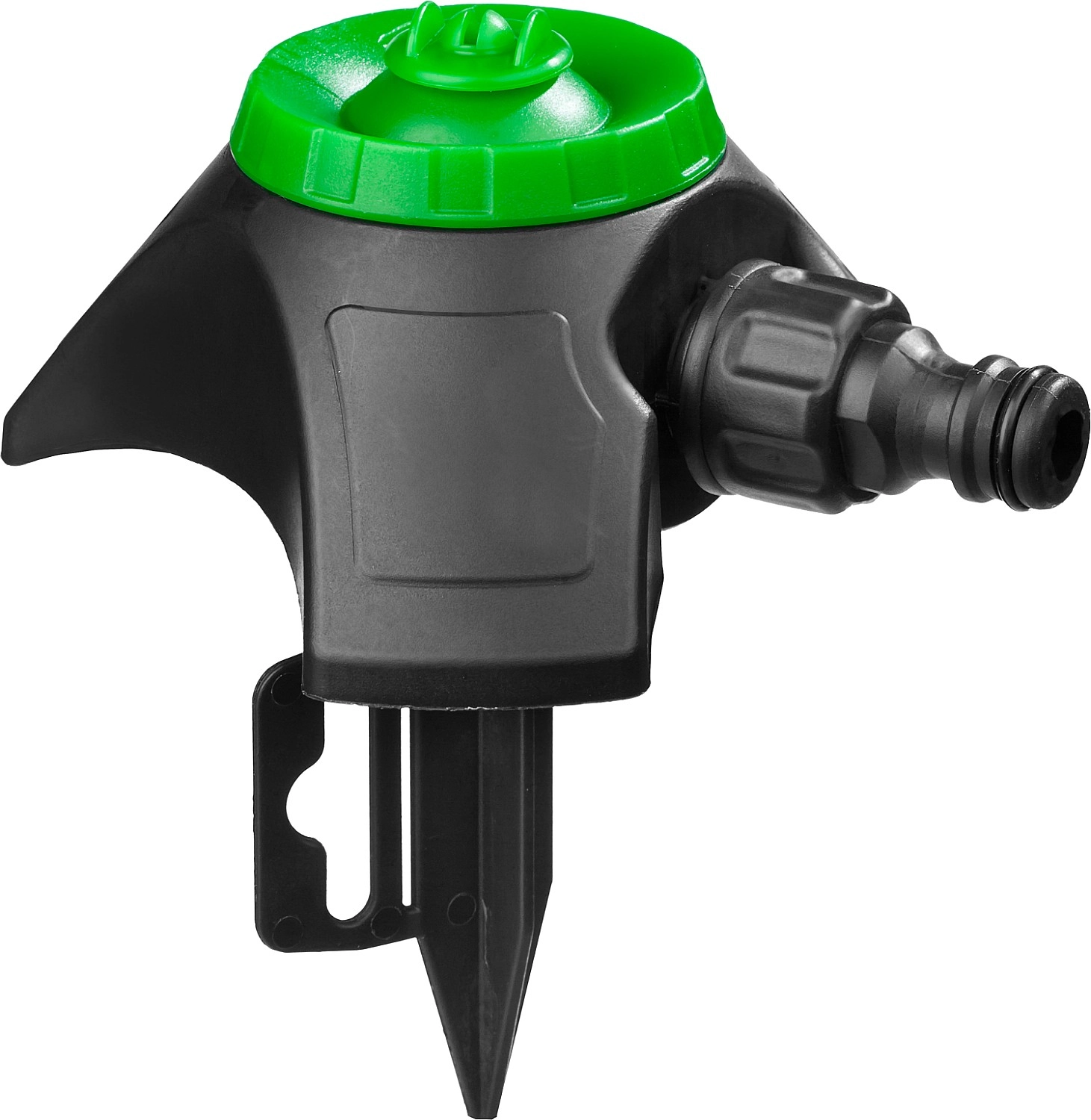 Полив по радиусу 2-3 м; Линейный полив - длина 4-6 м, ширина - 2м; Широкое основание и колышек-упор придают дополнительную устойчивость на газоне. Изготовлен из ударопрочного пластика.Производитель: Крафтул И/Е Гмбх, Альтер Поствег Штр., Лоенинген, Германия