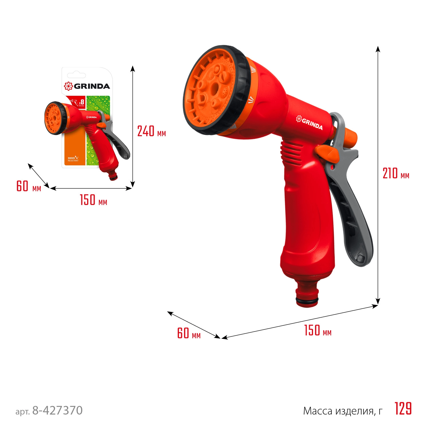 ПроизводителиРаспылитель поливочный пластиковый, тип пистолетный, 8 позиционный (8-427370_z02) Grinda