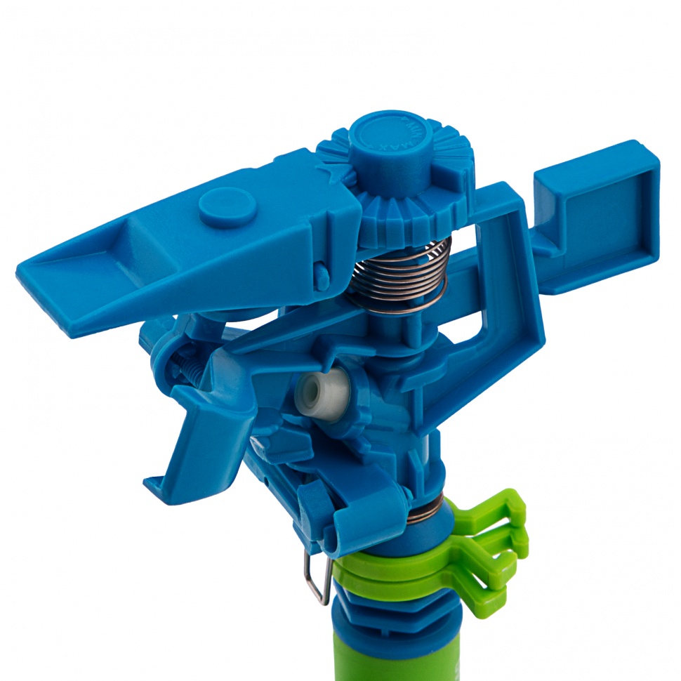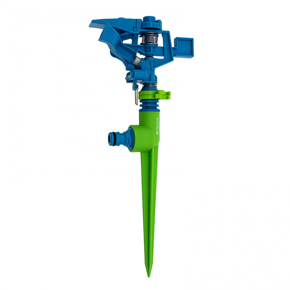 Импульсный пластиковый разбрызгиватель Palisad LUXE 65480 со штырем обеспечивает стационарный полив участка площадью до 500кв.м.