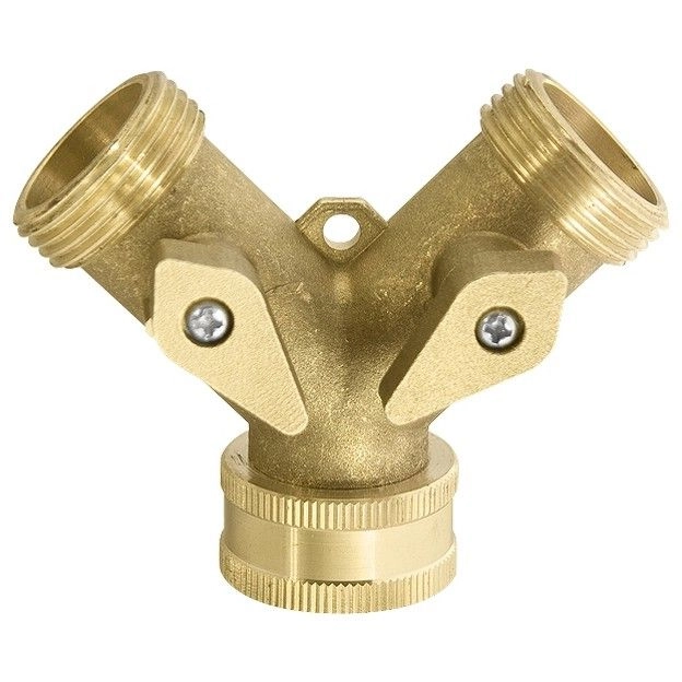 Латунный регулируемый 2-канальный разветвитель Palisad 66523 с внешней и внутренней резьбой 3/4 дюйма служит для разветвления водопроводной магистрали.