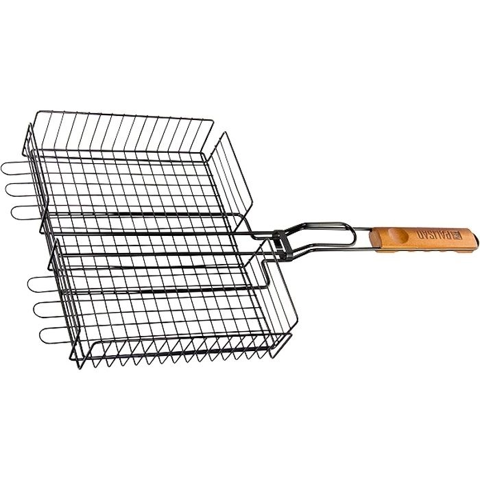 Благодаря объемной конструкции решетку можно регулировать по высоте для качественного приготовления крупных кусков рыбы, мяса и даже целой тушки курицы без вытекания сока.