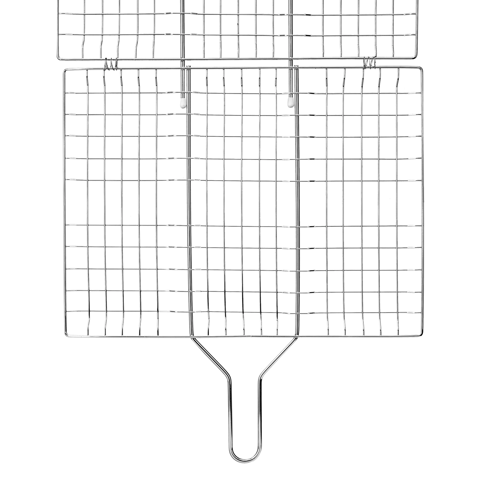 Решетка оборудована увеличенными опорными стержнями, за счет чего прочно фиксируется на мангале, а при готовке ее площадь используется полностью.