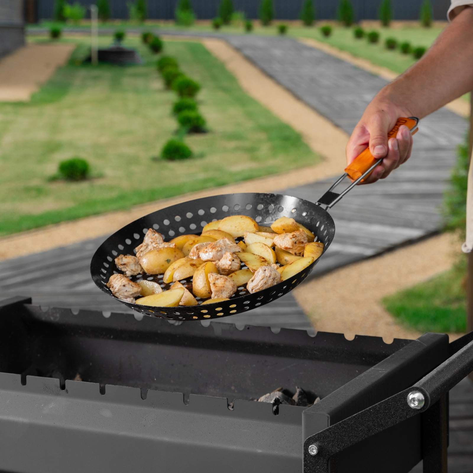 Прочность и долговечность — жаровня изготовлена из высококачественной жаропрочной стали.
