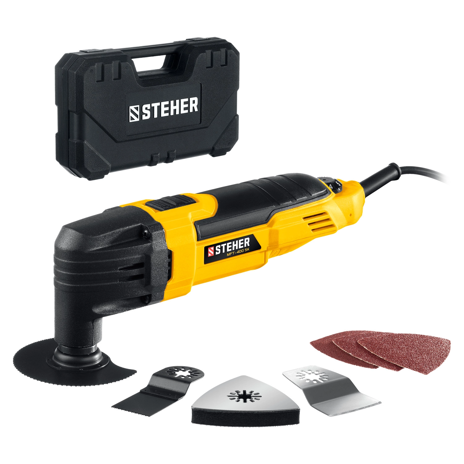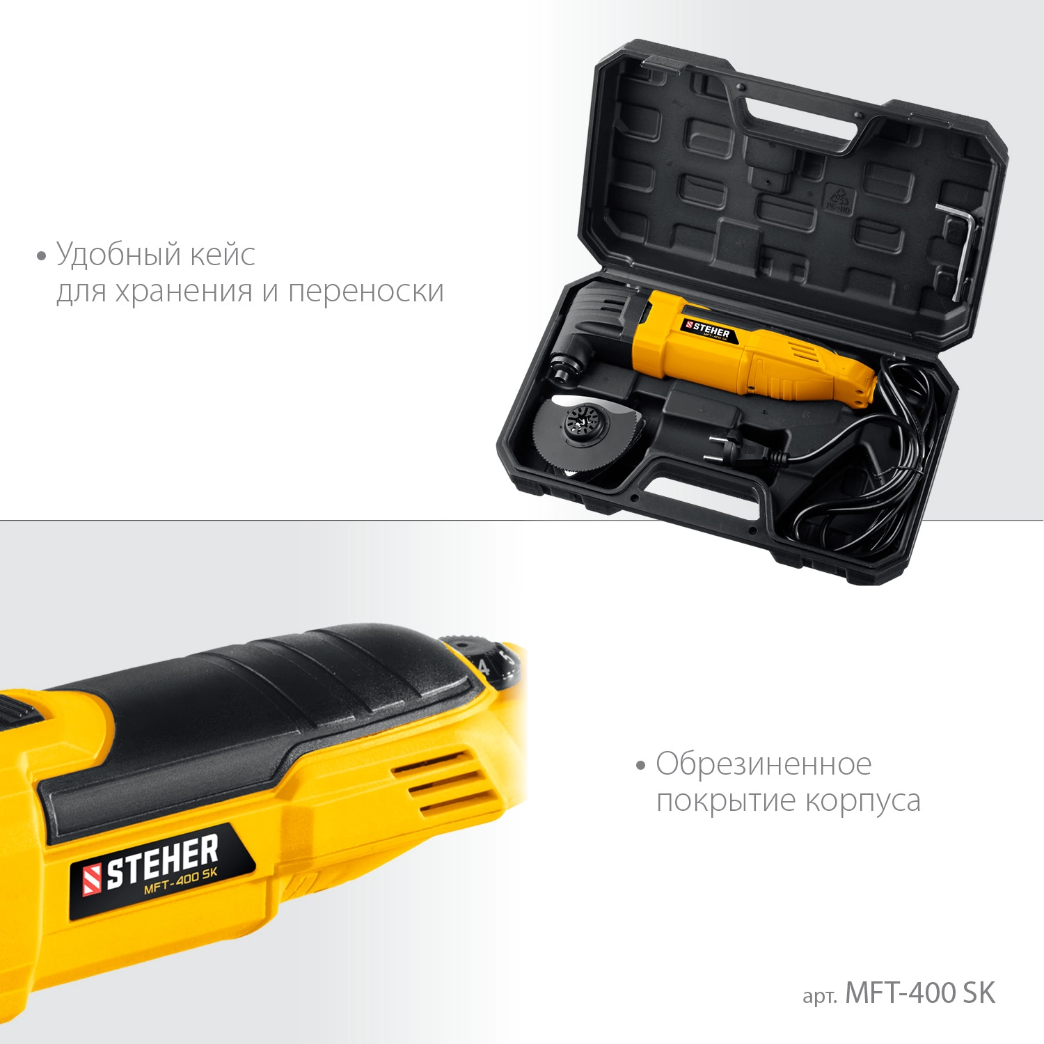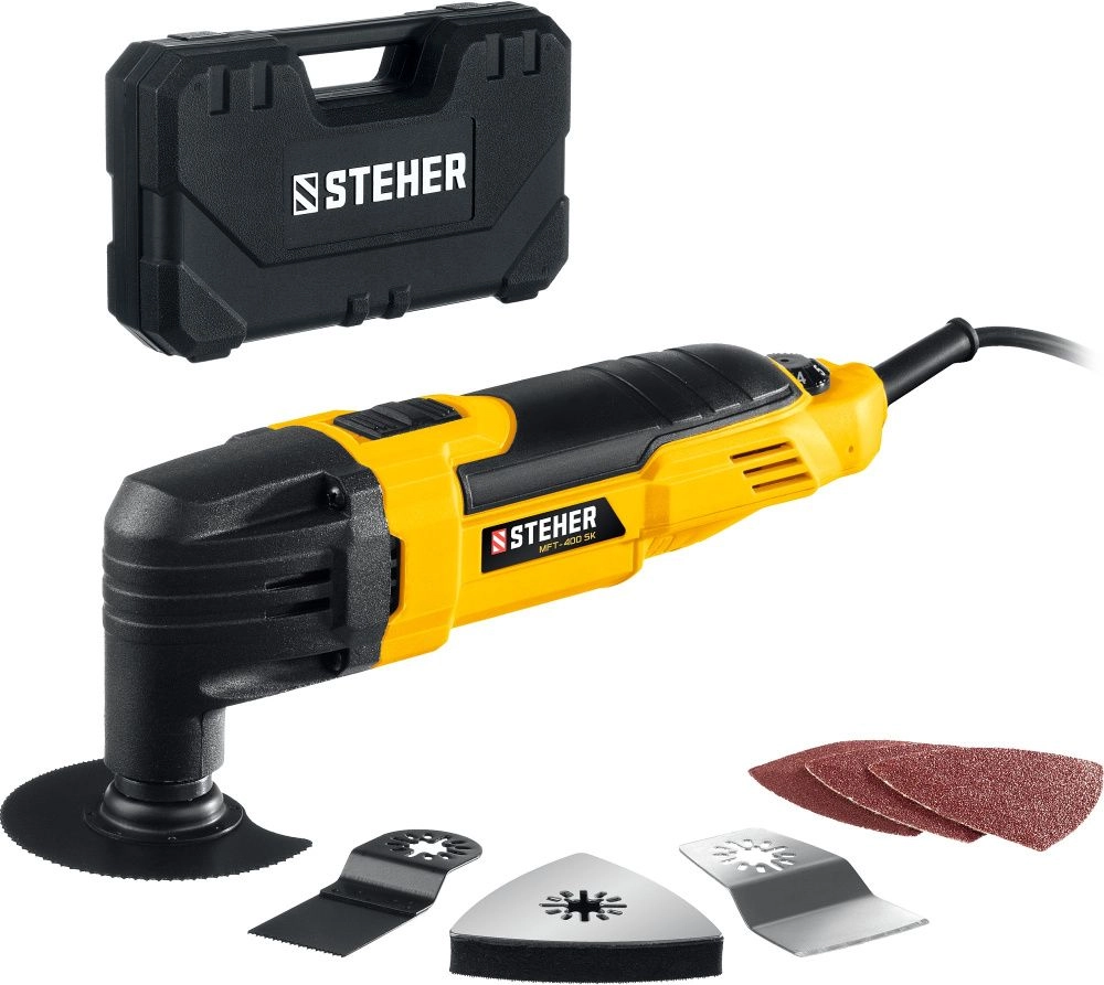 ПроизводителиРезак (реноватор) сетевой MFT-400 SK (400 Вт, угол.кол.. 3гр., набор насадок, OQIS/OIS, кейс) STEHER
