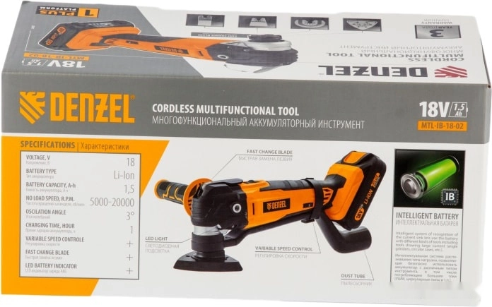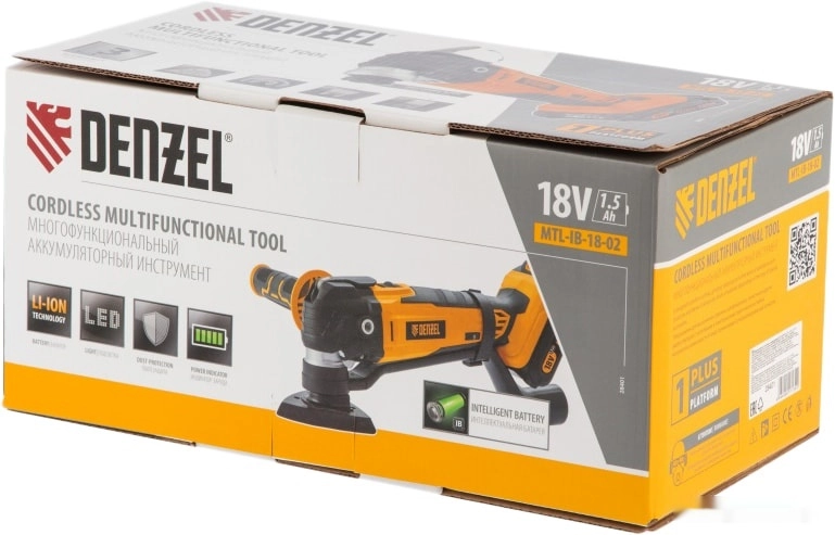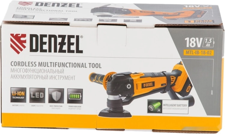 Бренд: DENZELМногофункциональный аккумуляторный инструмент Denzel MTL-IB-18-02 28401 с батареей Li-Ion напряжением 18 В и емкостью 2 Ач предназначен для выполнения широкого спектра задач. Позволяет осуществлять распил, подрезание, зачистку, обдирку практически любых материалов, например, древесины, металла, керамики. С высокой эффективностью работает даже в местах, недоступных для обычного лобзика и шлифовальной машины.;Аккумулятор Li-Ion 18 В с защитой от глубокого разряда и перезаряда обеспечивает не только автономность инструмента, но и высокие технические характеристики.