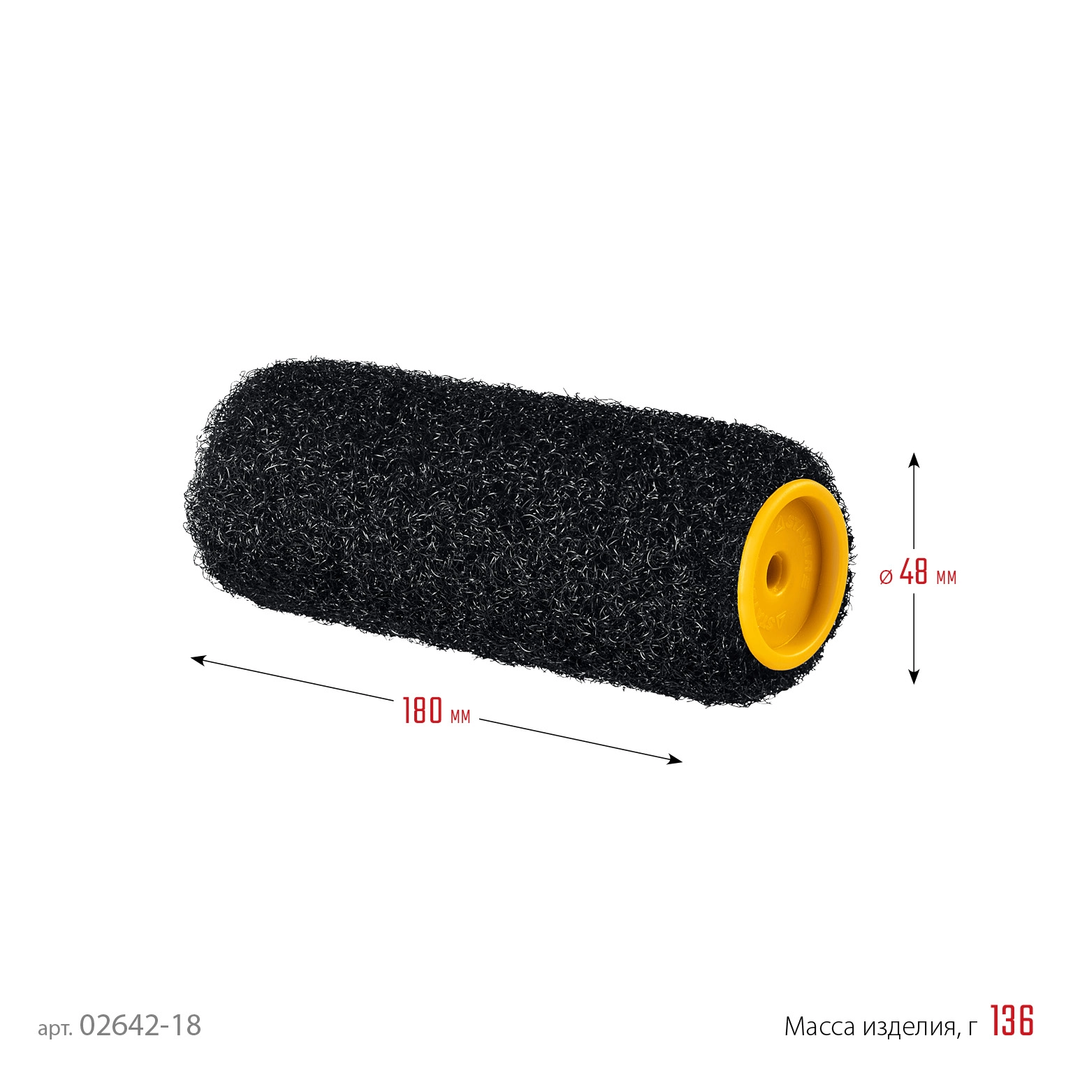 ПроизводителиРолик для нанесения шпатлевок 180мм/8мм, туба 48мм, нейлон (02642-18) STAYER