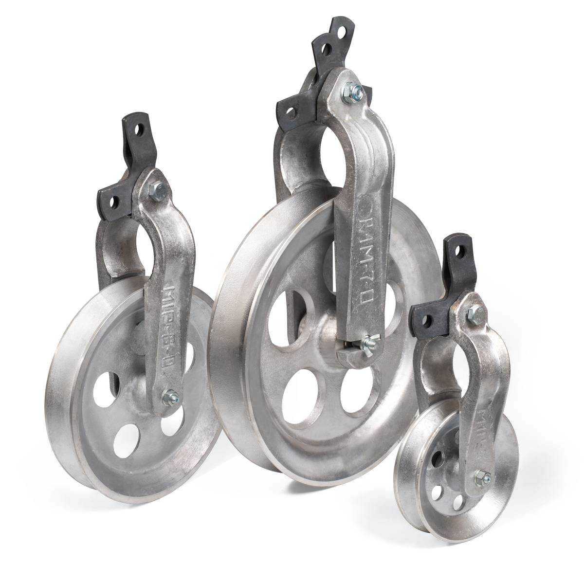 тип: РМ Диаметр ролика: 320 мм; Максимальный диаметр провода: 22 мм; Разрушающая нагрузка: 10 кН; Рабочая нагрузка: 5 кН; Сдвижная щека дает возможность, не снимая ролика с траверсы после раскатки провода, осуществить его выемку; Закрытые подшипники надежно защищают узел оси вращения от попадания грязи; Форма ручья гарантирует, что при небольших углах поворота линии электропередачи, провод не выпадет; Характеристики