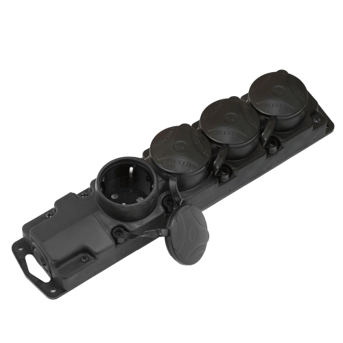 Штепсельная переносная четырехместная с заземляющим контактом брызгозащищенная.