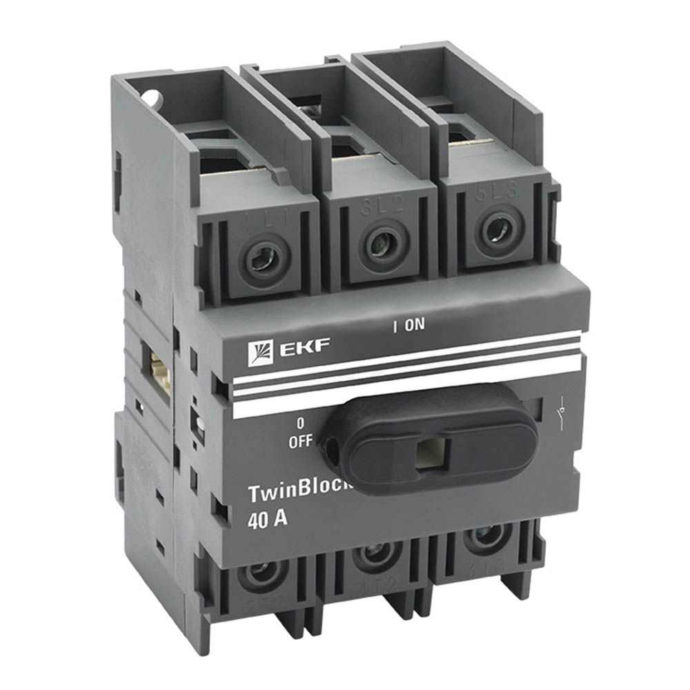 ПроизводителиРубильник c рукояткой управления для прямой установки TwinBlock 3P (40А 380В IP30) tb-40-3p-f EKF