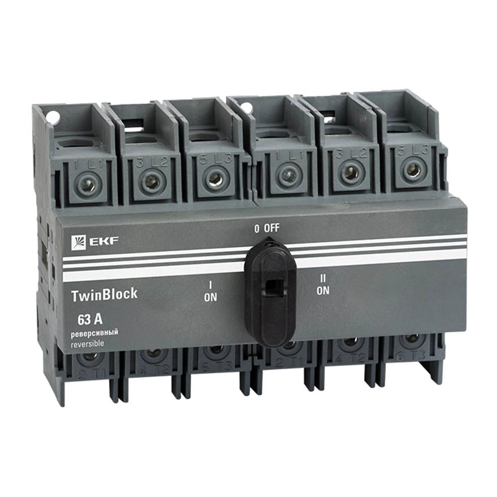 ХарактеристикиАртикул tb-s-63-3p-revБренды EKFСтрана производства РоссияГарантия 60 месяцевНоминальный ток, А 63Количество полюсов 3Выключатели-разъединители серии TwinBlock EKF PROxima предназначены для пропускания номинальных токов, включения и отключения электрических цепей номинальным напряжением до 690 В переменного тока частотой 50 и 60 Гц в устройствах распределения электриче ской энергии. TwinBlock имеют следующие исполнения: • с предустановленной рукояткой управления (80 А, 100 А); • без рукоятки управления (рукоятку необходимо приобретать отдельно). • реверсивные (перекидные) рубильники без рукоятки (рукоятку необходимо приобретать отдельно). Для моделей без рукоятки предусмотрены два типа рукояток: • выносная рукоятка для управления через дверь; • рукоятка управления для прямой установки на рубильник.Выключатели-разъединители серии TwinBlock (модели 160-800 А) имеют возможность подключения дополнительного четвертого полюса. Возможна коммутация алюминиевым и медным проводом.
