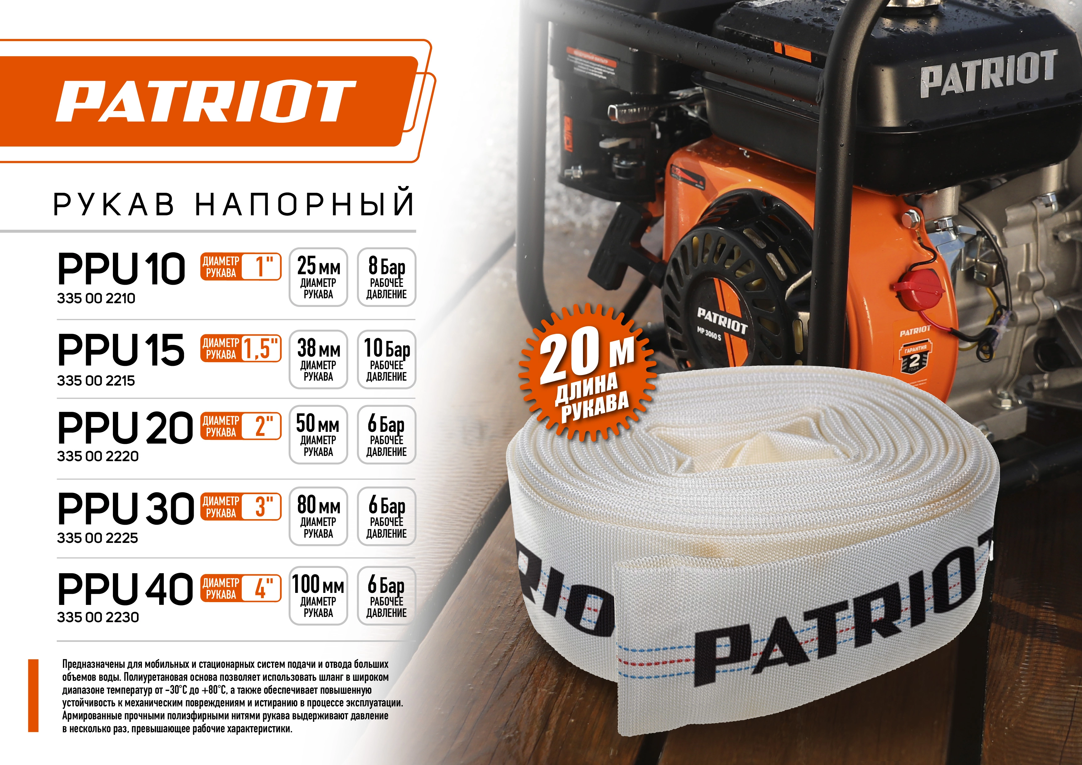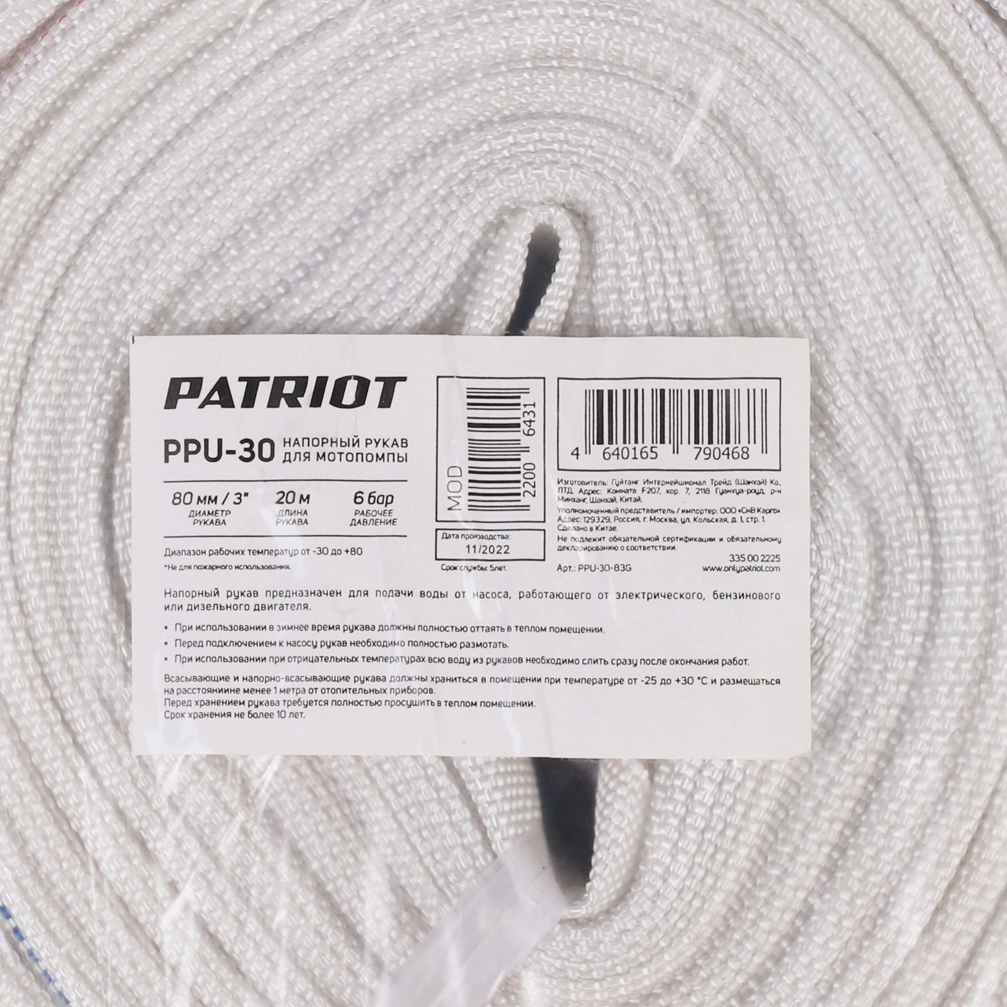 ПроизводителиРукав напорный PPU-30 (Ø 80мм 6 бар 20м °С -30/+80) PATRIOT