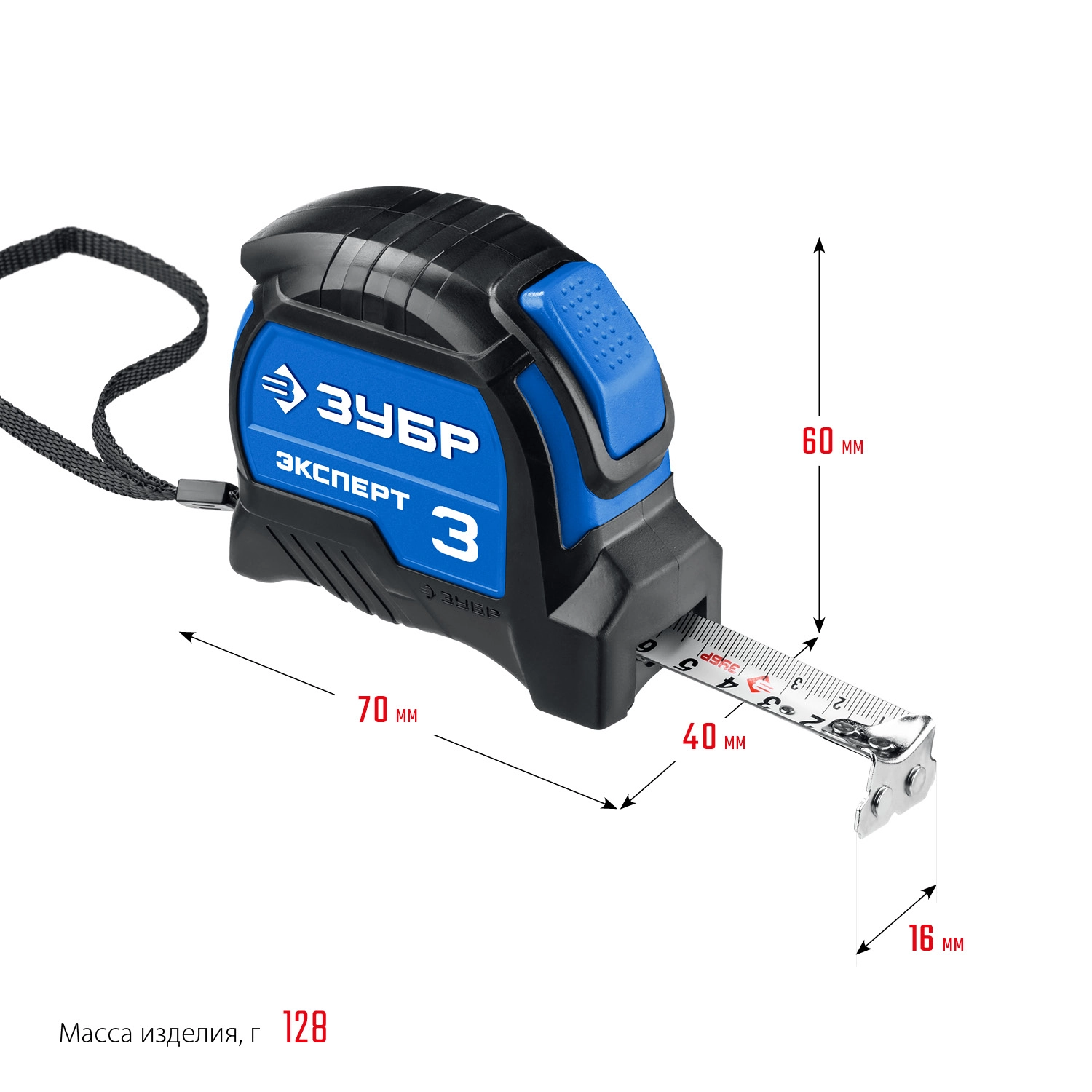 ПроизводителиРулетка 3м/16мм, автостоп, нейлон. покр., магн., прорез. корпус, быт. (34057-03-16_z02) ЗУБР
